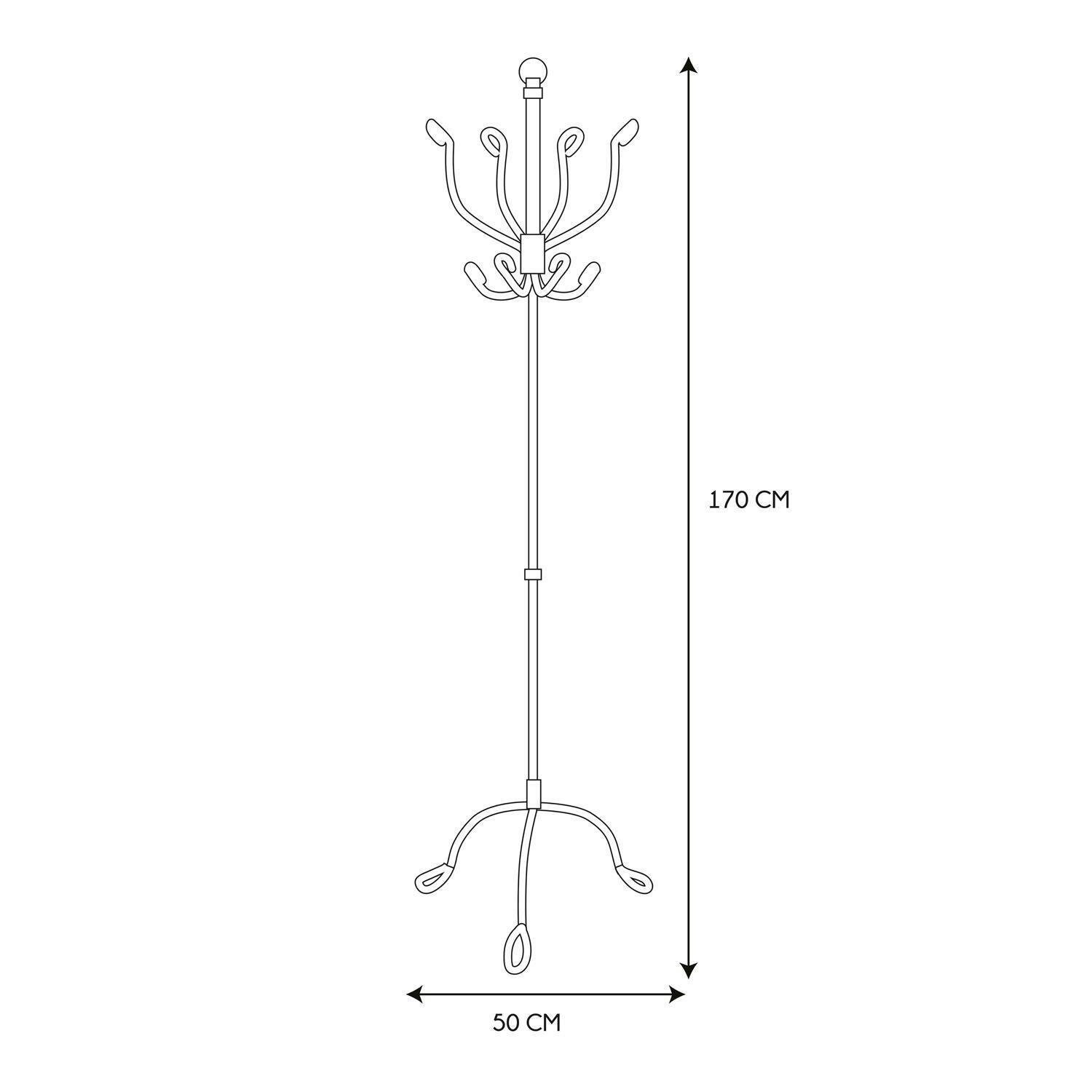 Osm dobře rozmístěných háčků umožňuje pohodlné zavěšení bund, tašek, šál i klobouků. Stojací věšák Loop Intesi je řešen tak, aby bylo vše snadno dostupné — bez zdlouhavého hledání či přerovnávání. Každý háček unese až 3 kg, což ocení zejména ti, kteří potřebují pověsit těžší kabáty nebo tašky. Stabilní základna s hloubkou 50 cm zajišťuje bezpečné používání i při plném zatížení.