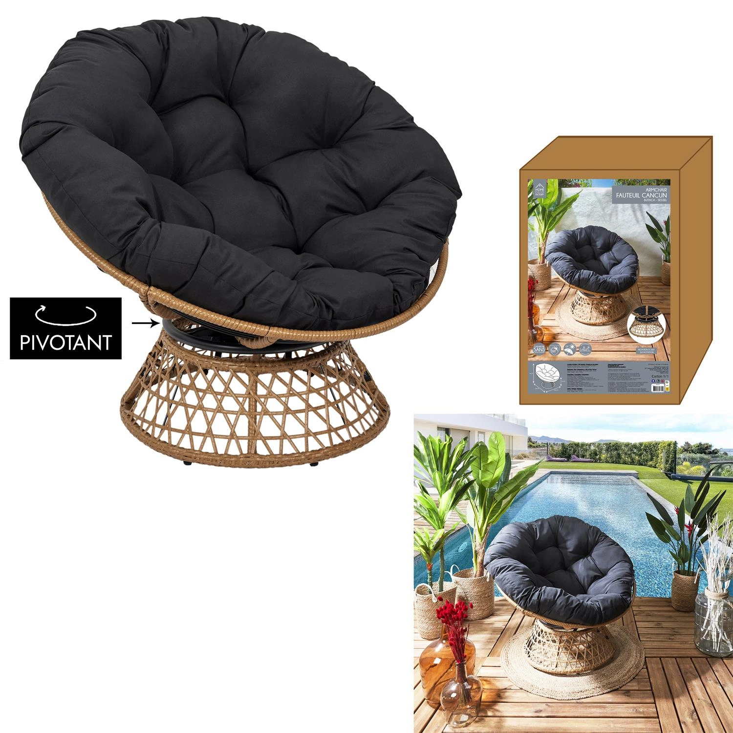 Křeslo Cancun je určeno pro milovníky přírodních inspirací a volných interiérových řešení. Kulaté sedadlo s měkkým polštářem vás zve k odpočinku po náročném dni, zatímco otočná základna umožňuje snadno měnit směr sezení bez vstávání. Černý polštář krásně kontrastuje s přírodním odstínem základny a vytváří výrazný prvek v každém interiéru i na venkovních prostorech.