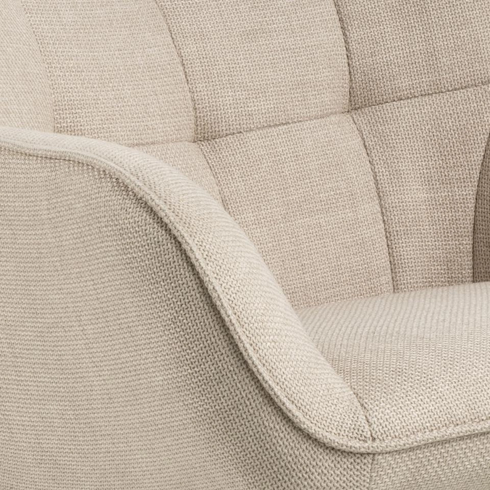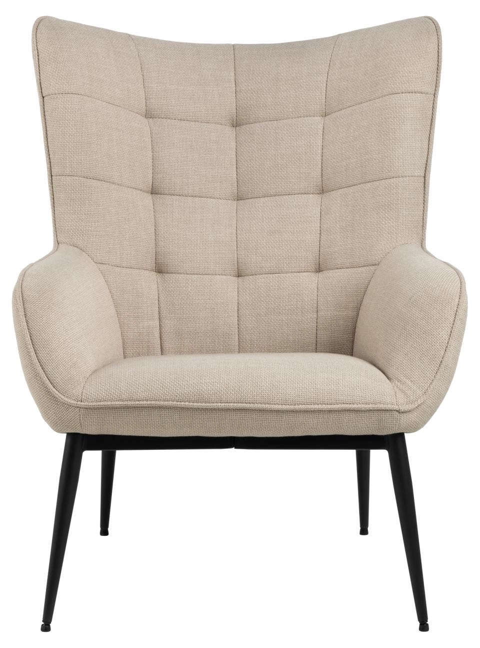 Minimalistický styl křesla Redding, podtržený prošívaným povrchem a jemným béžovým odstínem, perfektně zapadá do moderních interiérů. Matné provedení látky a černá, štíhlá základna z práškově lakované oceli dodávají křeslu lehkost a eleganci. Křeslo nejen ozdobí váš obývací pokoj, ale také stylově doplní ložnici nebo domácí pracovnu a přinese do prostoru pocit klidu a harmonie.