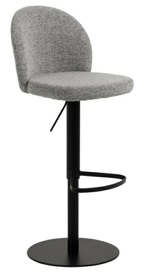 Hoker Patricia od značky Actona je moderní, čalouněná barová židle s opěrkou, otočná a výškově nastavitelná, navržená speciálně k kuchyňským ostrůvkům a vysokým pracovním deskám. Spojuje pohodlí měkkého sedáku z tkaniny Monza v elegantní šedé barvě se stabilitou matné, černé kovové základny. Hoker nabízí nastavitelnou výšku sedu až do 80 cm a komfortní oporu zad, což z něj činí praktickou volbu do kuchyně nebo jídelny.