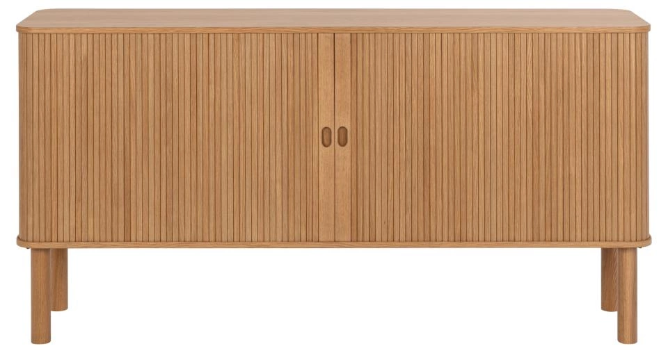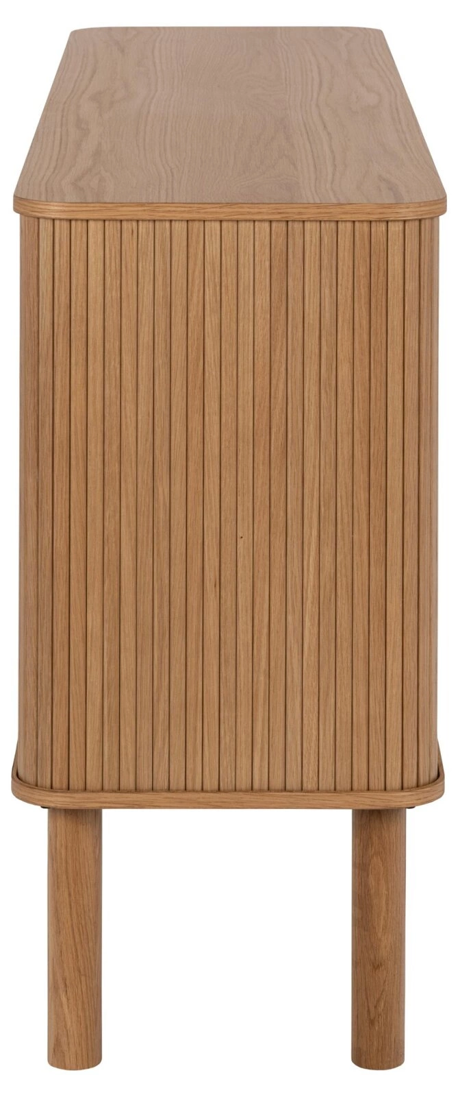 Komoda Langley zaujme čistými liniemi a pečlivě propracovanými detaily. Svisle frézovaná čela nejen upoutají pozornost, ale dodávají nábytku jemnou dynamiku. Přirozený odstín dubového dřeva a polomatný povrch perfektně zapadnou do moderních a minimalistických interiérů, kterým dodají teplo a eleganci. Stylové nožky s lehkou konstrukcí podtrhují vzdušnost celé komody a usnadňují úklid pod nábytkem.