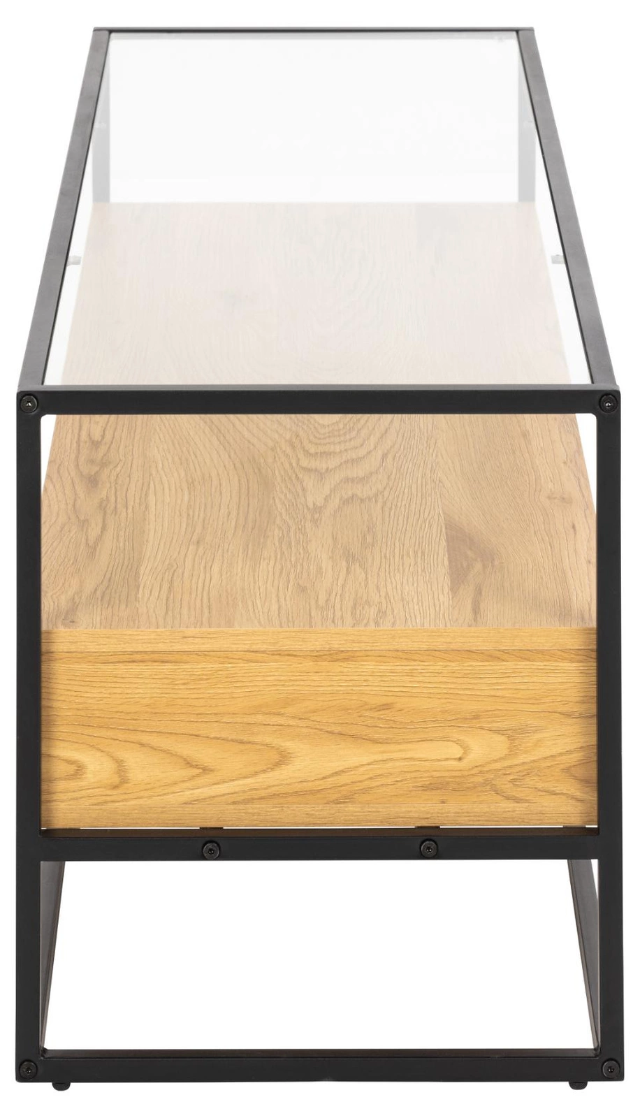 Moderní TV stolek Randolf se sklem a dubem 120 cm stojící do obýváku Actona