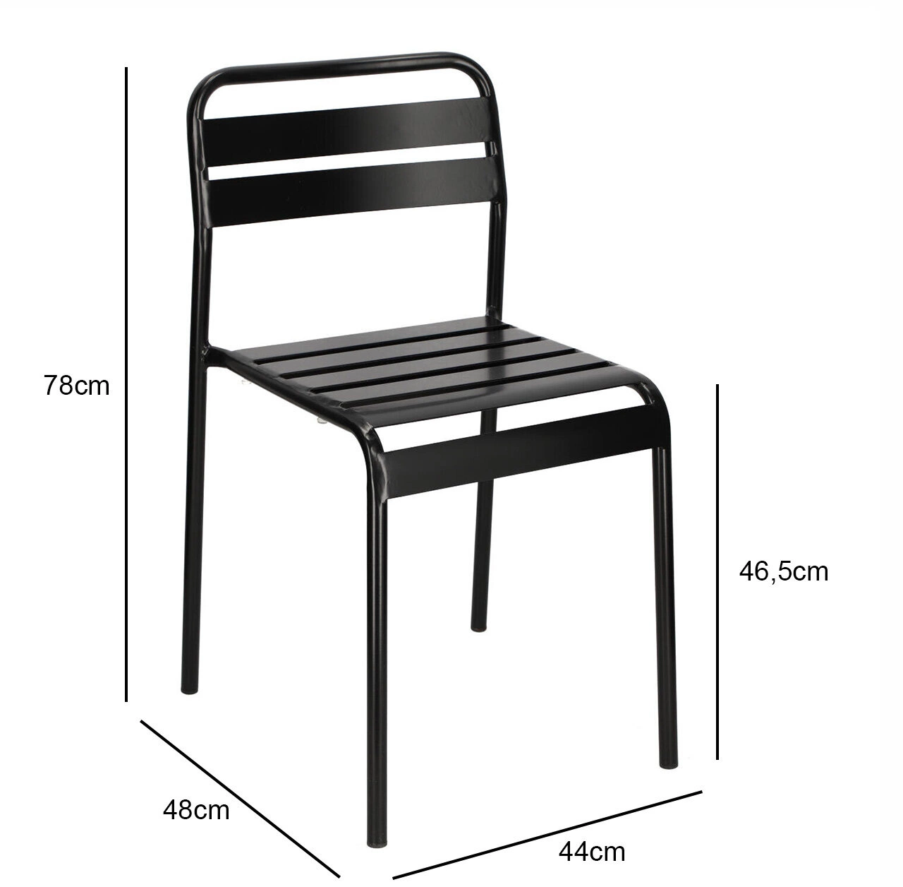 Kovová konstrukce s výškou 78 cm a šířkou 44 cm zajišťuje stabilitu i při častém používání. Sedák o rozměrech 38×38 cm a pohodlné opěradlo poskytují komfort při dlouhých rozhovorech u kávy nebo letních zahradních oslavách. Díky možnosti stohování několika židlí je snadno uskladníte mimo sezónu nebo rychle připravíte místo i pro větší počet hostů.