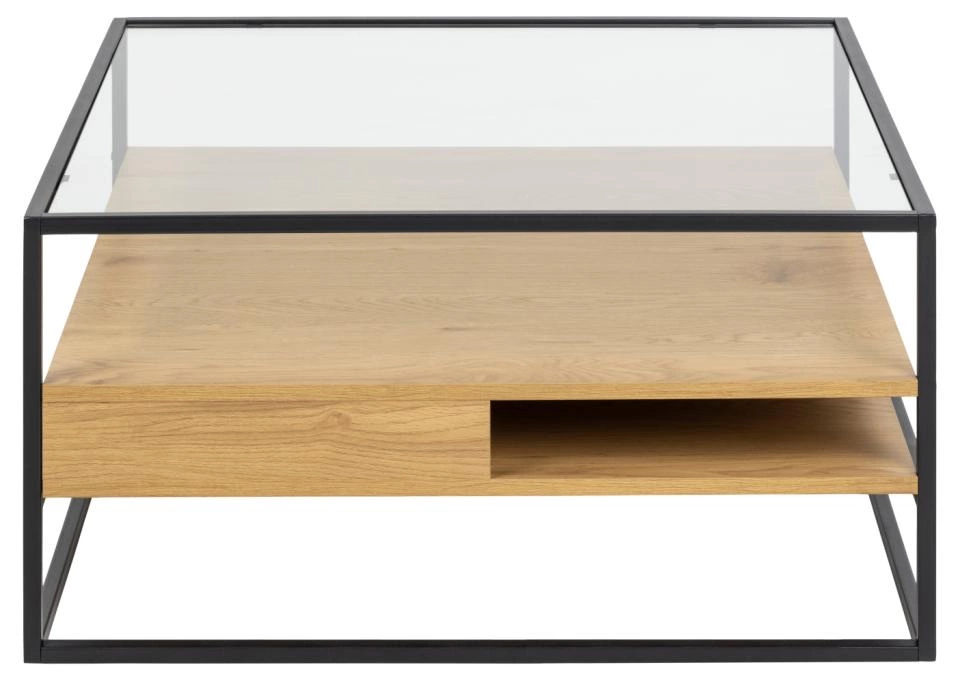 Kávový stolek Randolf čtvercový skleněný s policemi dub 80x80 cm od Actona – moderní prvek do vašeho obývacího pokoje