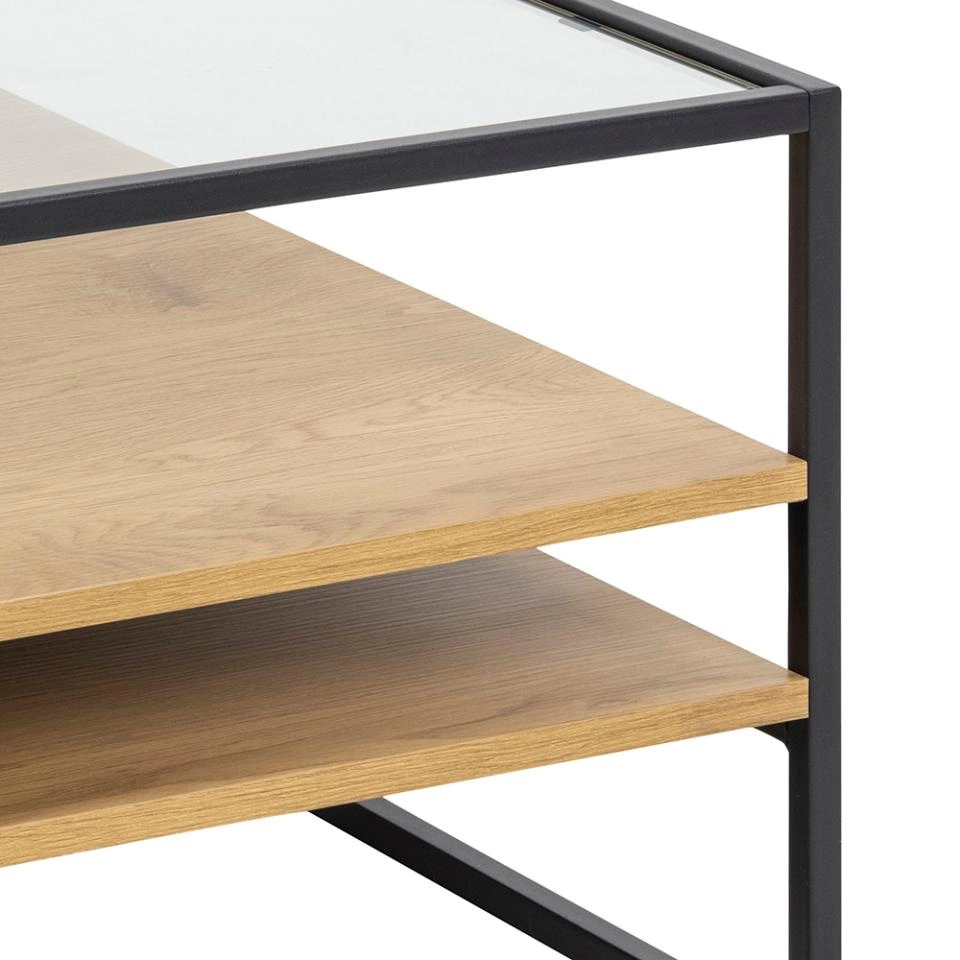 Konferenční stolek Randolf čtvercový skleněný s policemi dub moderní loftový do obýváku 80x80 cm