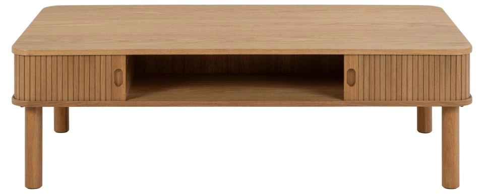 Stůl obdélníkového tvaru se zaoblenými rohy kombinuje moderní a rustikální estetiku a doplňuje nejmódnější styly interiérů. Stůl zdobí lamelové dekory, zdobí jej zaoblený tvar kmene a akcentuje lakovaný dub. Stůl je navíc vybaven posuvnými dvířky a otevřenou průchozísk.odou, která poskytuje pohodlný úložný prostor. stůl vyžaduje montáž. Materiál: MDF deska s dubovou dýhou. Podstavec v dubovém provedení. rozměry: 137,5x77,5x10 cm. Hmotnost: 30 kg