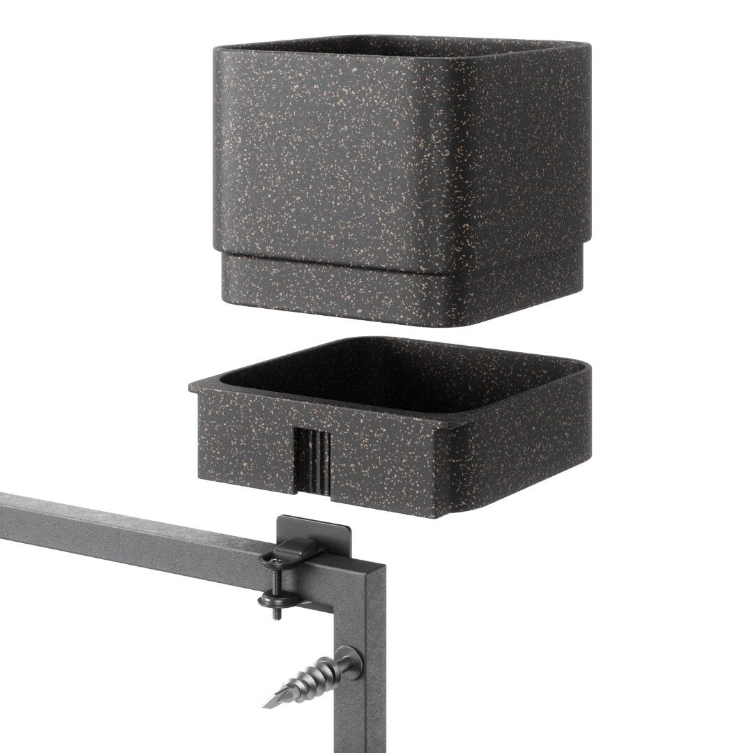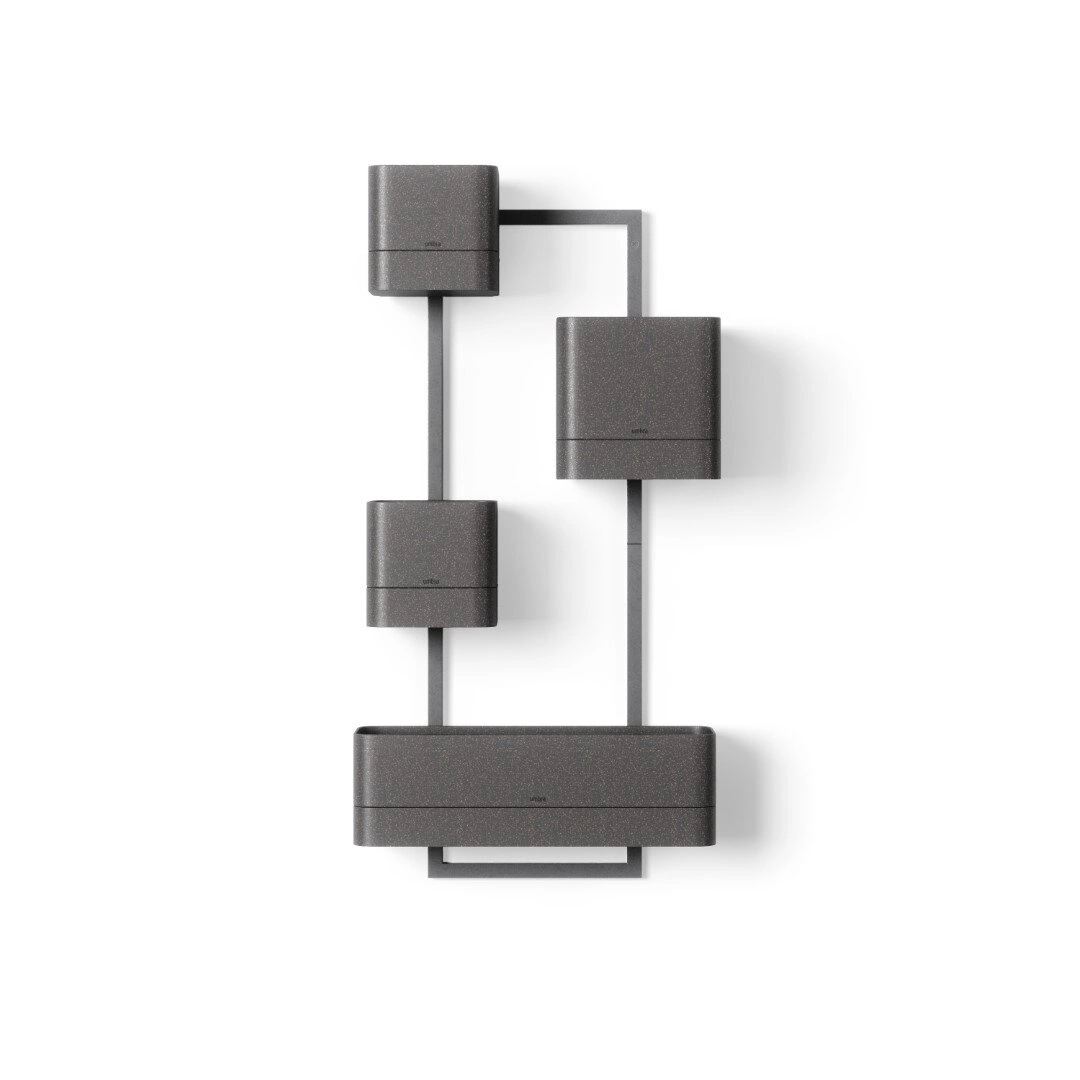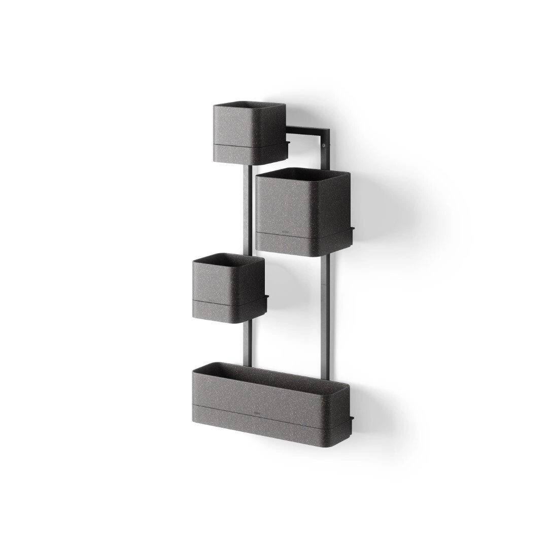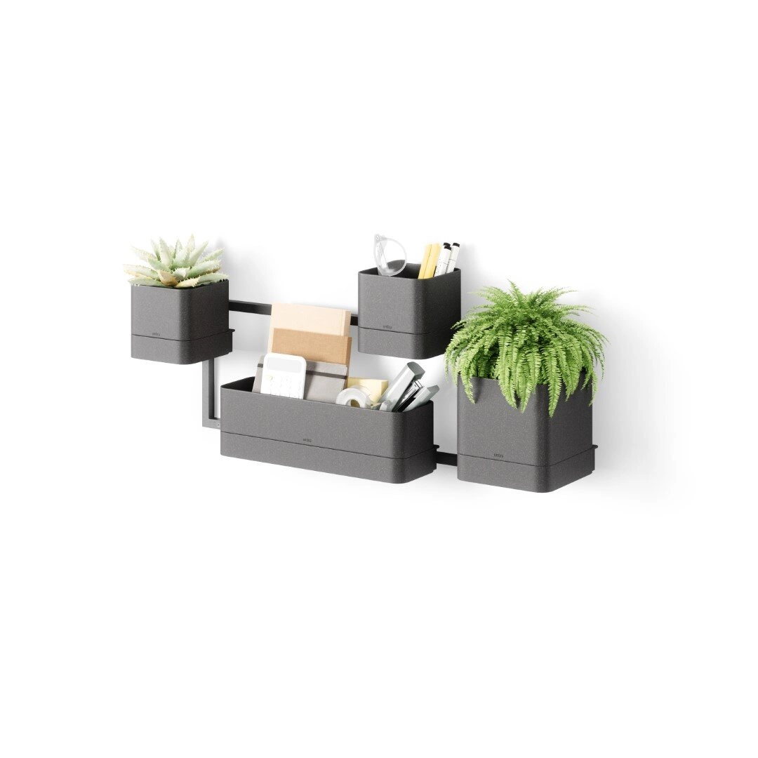 Má možnost libovolného uspořádání květináčů, abyste získali pro vás ideální kombinaci. Díky přiloženým drenážním vaničkám se navíc snadno postaráte o správnou hydrataci rostlin. Cubiko lze umístit vertikálně nebo horizontálně, aby co nejlépe sk.ace prostoru. Obsahuje 4 květináče různých velikostí, což umožňuje kreativní uspořádání. Květináč je vyroben z nerezavějícího plastu se zbytky dřevních vláken a rám je z kovu, což zajišťuje nejen odolnost, ale také estetický vzhled. S tímto organizérem na květináče/stěnu můžete zavěsit rostliny u vás doma nebo osk.odzie a zároveň dodat vašemu prostoru styl a charakter.