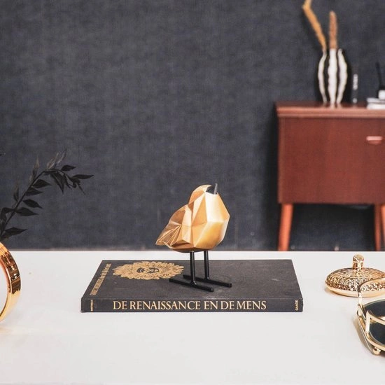 Figurka Love Bird XL je ideální volbou pro ty, kdo ocení originální bytové doplňky a luxusní atmosféru v interiéru. Zlaté provedení vnáší do vašeho domova nádech elegance a moderního stylu, zatímco stylizovaný tvar ptáčka přitahuje pohledy a podtrhuje osobitý ráz prostoru. Nejde jen o dekoraci, ale také o symbol harmonie a pozitivní energie, která obohatí atmosféru vašeho domova.