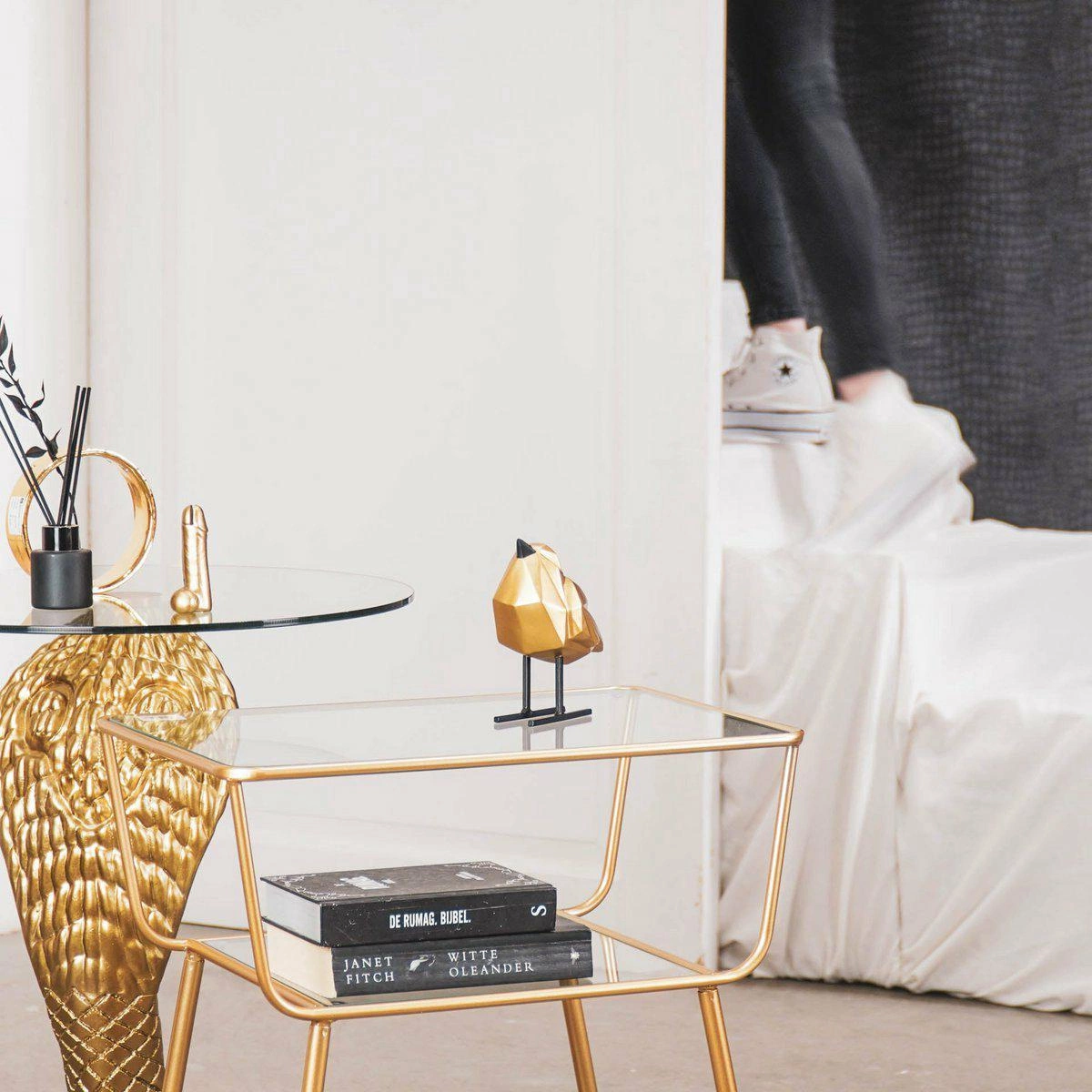 - Zlatá dekorativní figurka – stylový prvek, který podtrhne luxusní glamour vzhled
