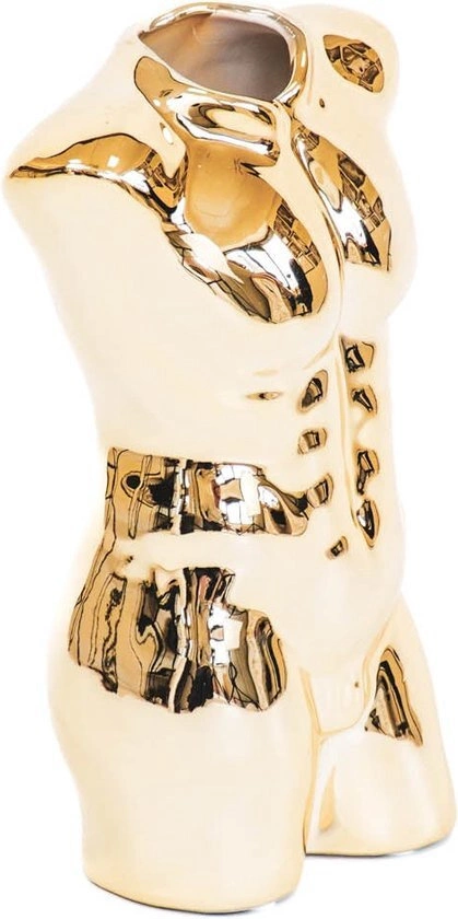 Hledáte jedinečný doplněk, který okamžitě promění atmosféru vašeho interiéru? Váza ve tvaru mužského torza je ideální volbou pro ty, kteří oceňují individualitu a odvážná designová řešení. Zlatý povrch krásně odráží světlo, zdůrazňuje detaily a dodává celému předmětu výraznost. Nejde jen o vázu do obýváku, ale i o dekorativní sochu, která zaujme a inspiruje k rozhovorům.