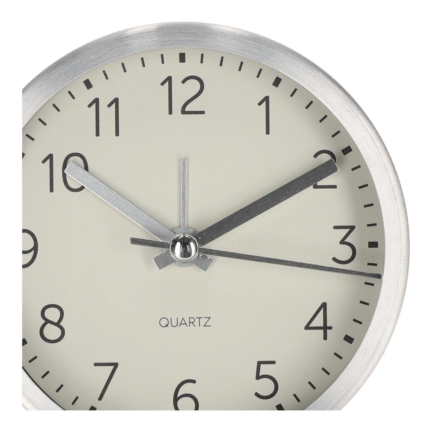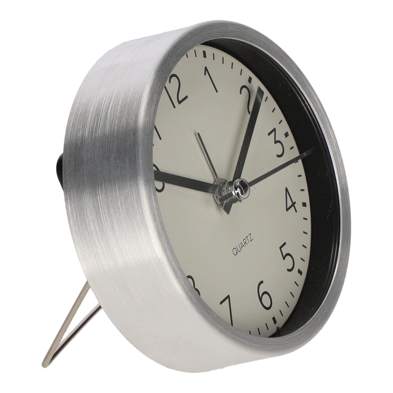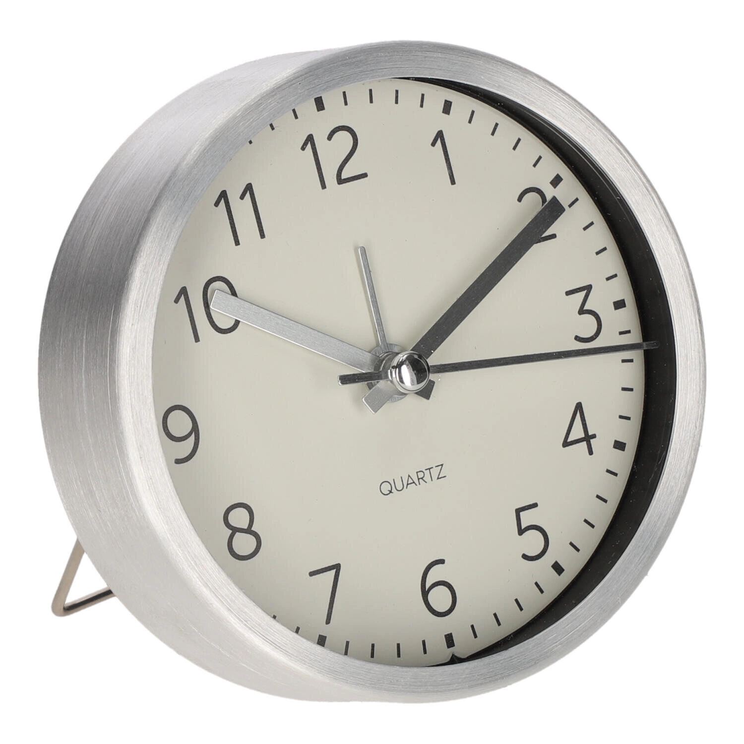 Stříbrný moderní budík Quazi stolní hodiny do ložnice a kanceláře průměr 9 cm Intesi