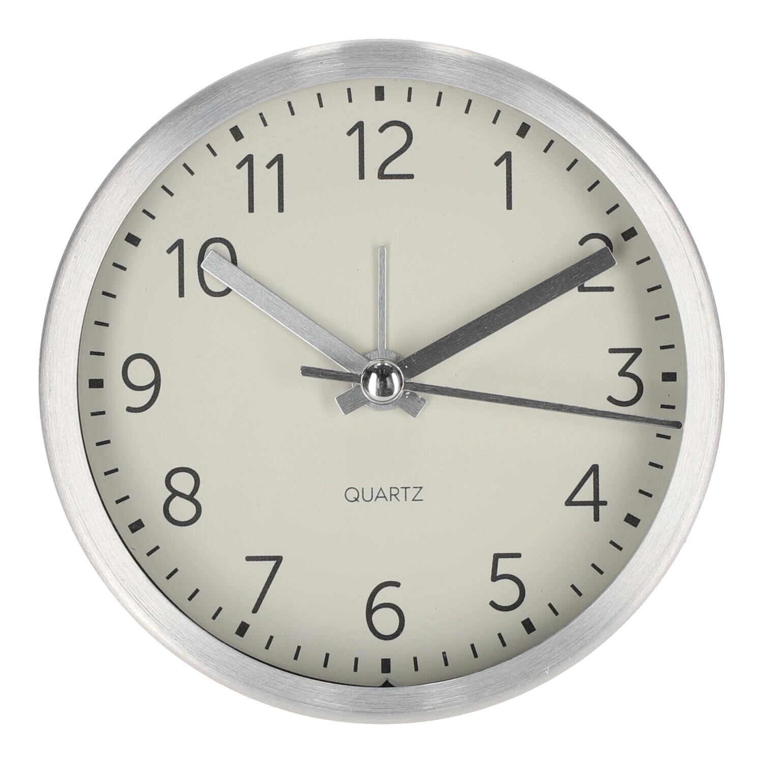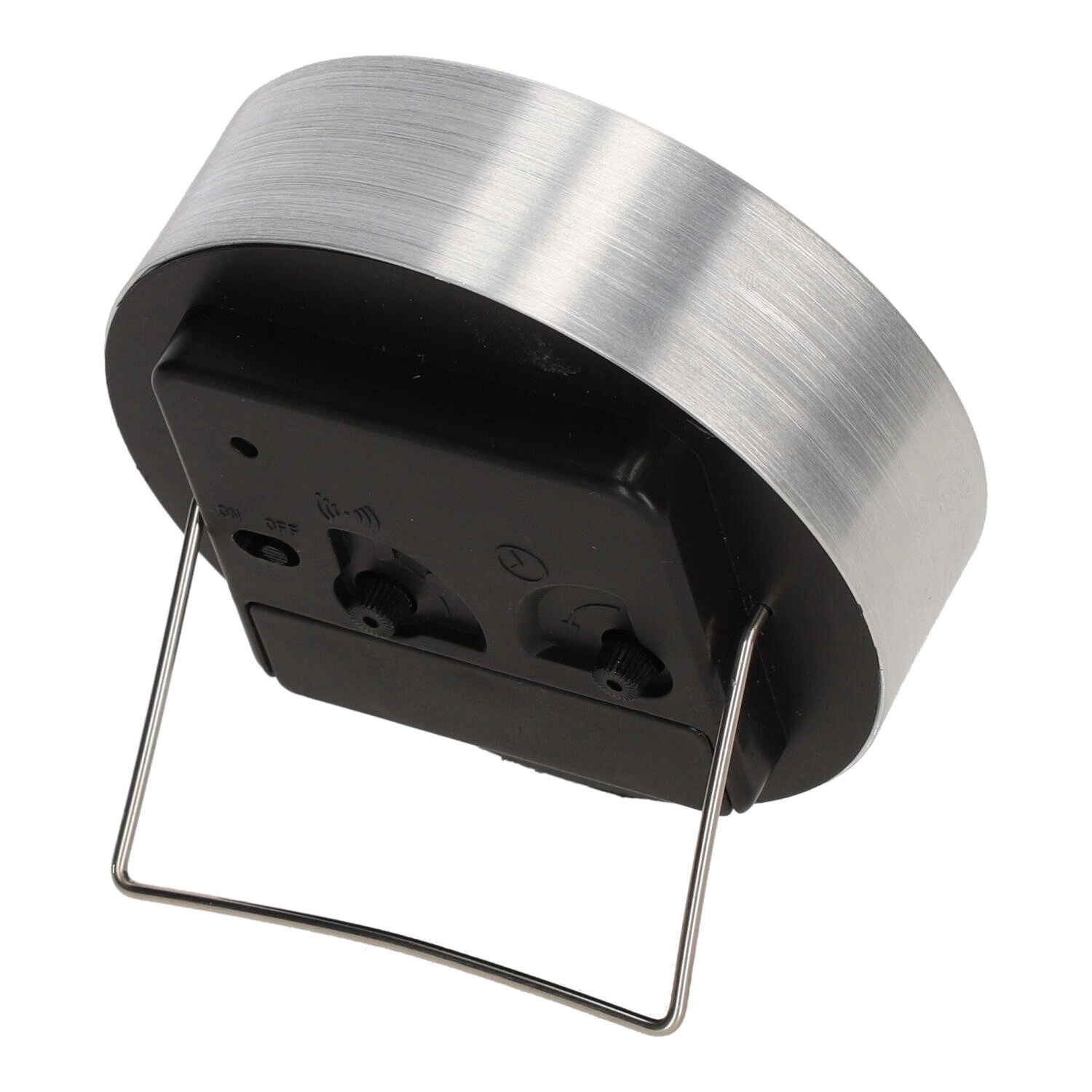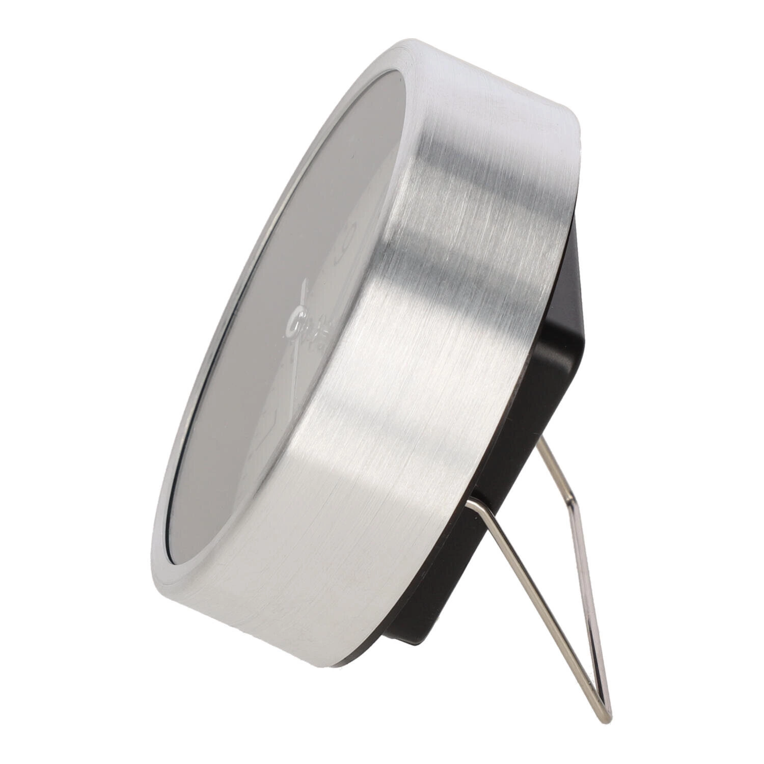 Stříbrný moderní budík Quazi stolní hodiny do ložnice a kanceláře průměr 9 cm Intesi
