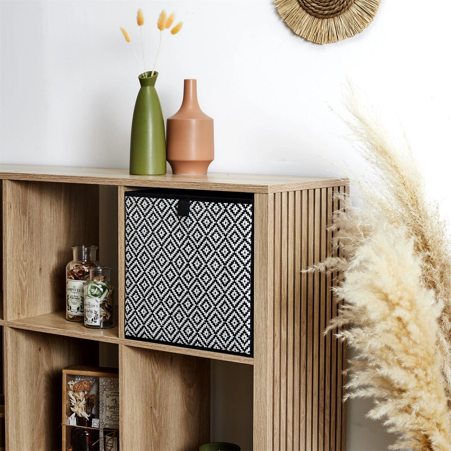 Box / Krabice do regálu o rozměrech 30x30x30 cm je dokonalým doplňkem knihoven Kali a dalšího kubického nábytku. Box je vyroben z vysoce kvalitních materiálů, jako je plast, karton a polyesterová tkanina, a je tak nejen odolný, ale také estetický.