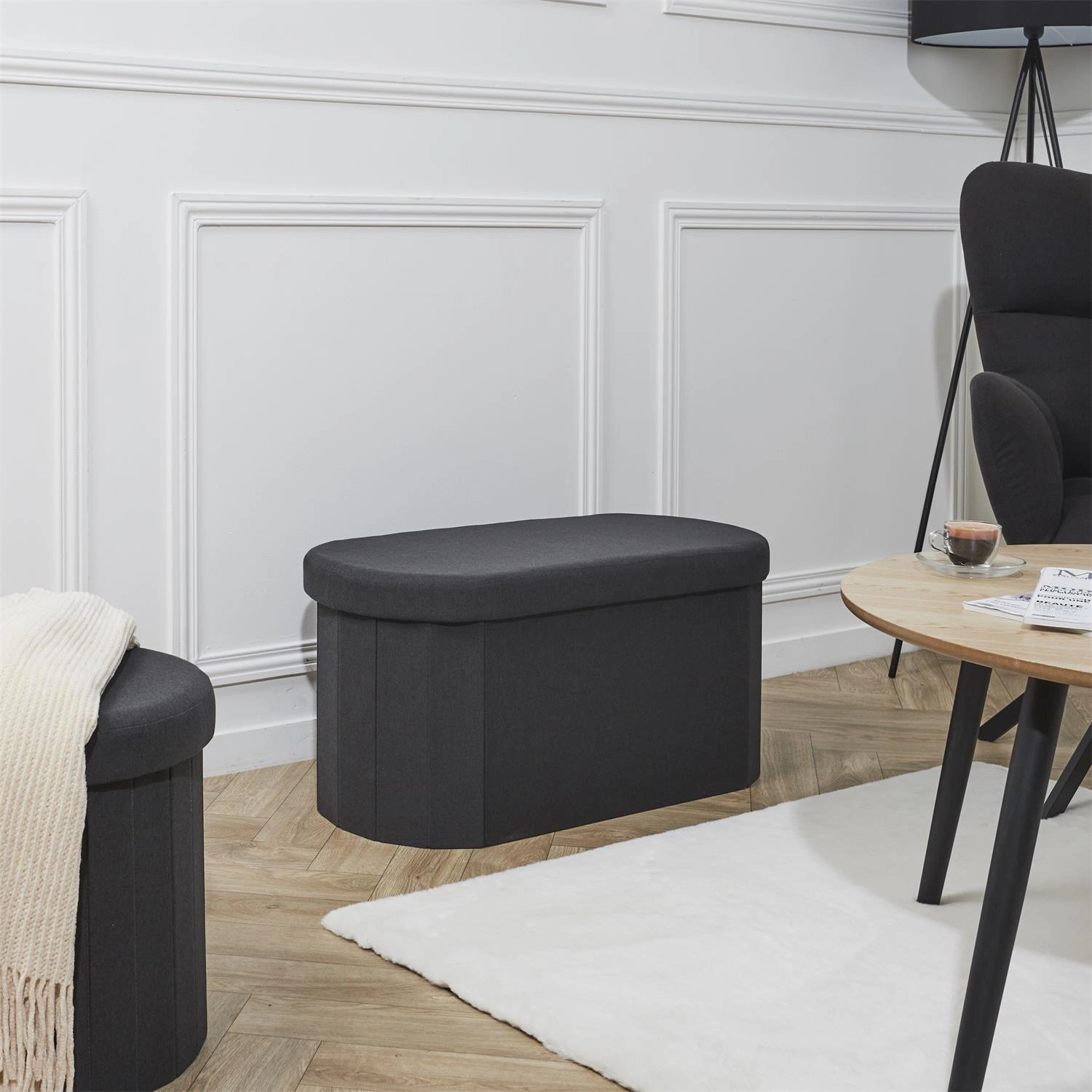 Čalouněná lavice Olaf antracitová od značky Intesi je moderní, skládací nábytek s úložným prostorem, navržený pro maximální funkčnost a pohodlí při každodenním používání. Šířka 76 cm a hloubka 38 cm z ní dělají ideální lavici do předsíně nebo ložnice – perfektní na boty, drobnosti či textilie. Čalouněné sedátko v odstínu antracitově šedé a prostorný úložný box pod odklápěcím víkem spojují pohodlí pufy s praktičností úložné truhly.