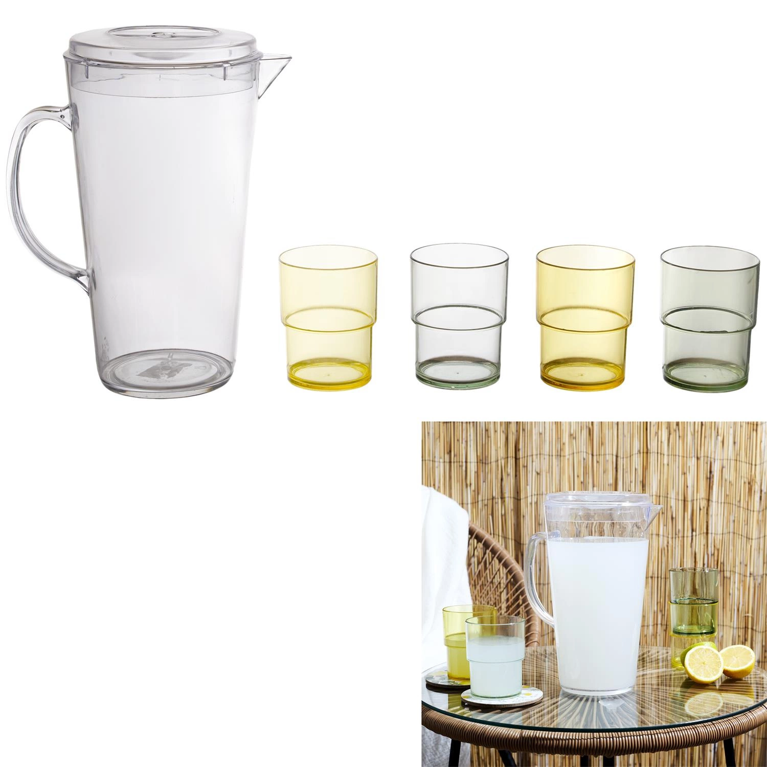 - Džbán a 4 sklenice tvoří kompletní sadu pro podávání nápojů na piknicích a venkovních akcích.