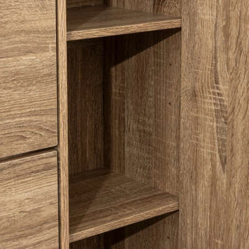 Botník se zrcadlem byl vyroben z odolného materiálu - dřevotřískového aglomerátu v přírodní barvě. Estetické frézované úchytky dodávají nábytku elegantní vzhled a zároveň usnadňují otevírání a zavírání dvířek. Kromě toho je zde vyhrazen prostor pro pět polic, do kterých můžete ukládat doplňky, jako jsou šály nebo klobouky, a udržovat tak pořádek v předsíni. Díky vestavěnému zrcadlu je tato skříň ideální pro ty, kteří hledají praktické a stylové řešení pro svou předsíň.