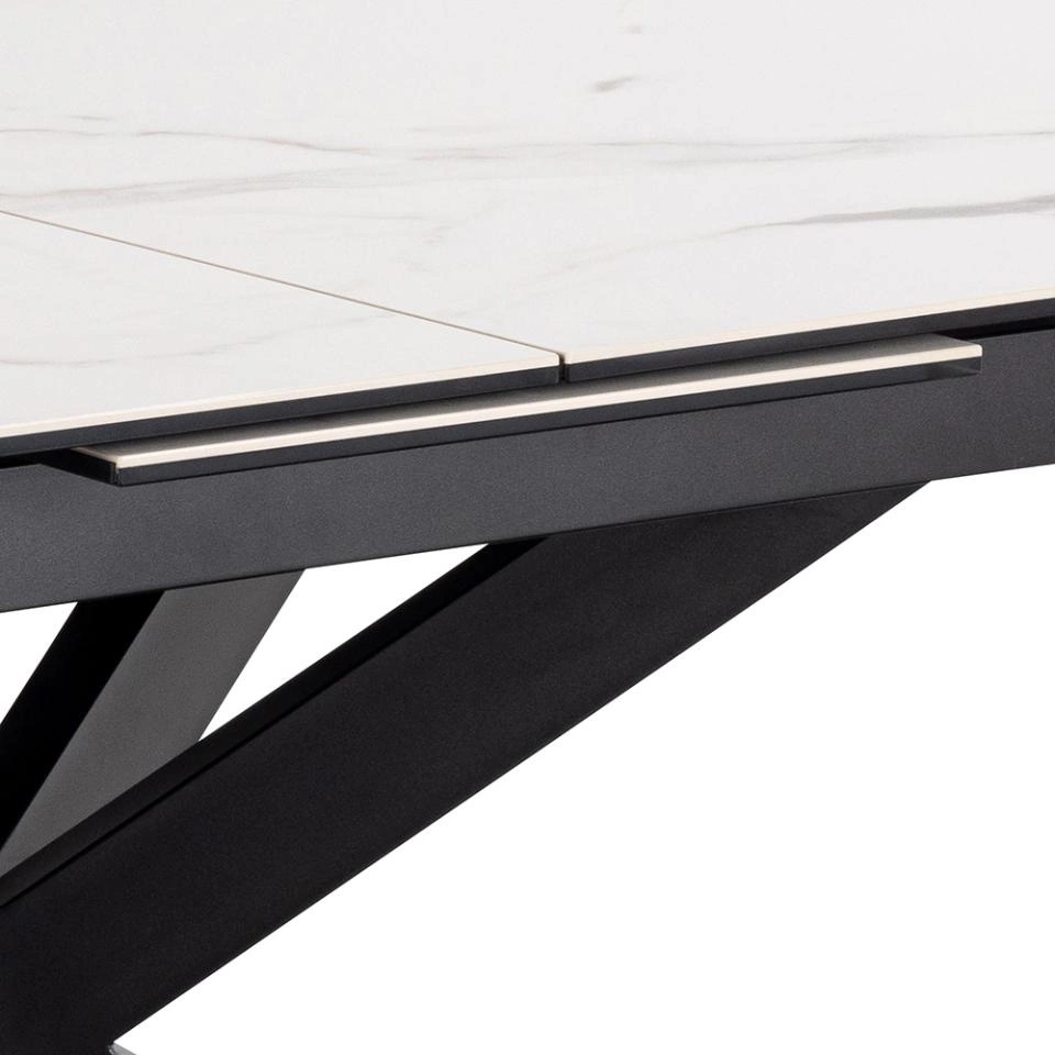 Rozkládací jídelní stůl Irwine Akranes od značky Actona je ideální volbou pro ty, kdo ocení moderní design, funkčnost a dlouhou životnost. Nabízí velkou bílou keramickou desku o šířce 168 cm, kterou lze jednoduše prodloužit až na 210 cm, což zajišťuje pohodlné posezení až pro osm osob. Stabilní konstrukce stojí na čtyřech černých ocelových nohách a matný povrch podtrhuje eleganci celého nábytku. Tento stůl je perfektní do jídelny nebo kuchyně – skvěle poslouží jak při každodenních jídlech, tak i při větších rodinných setkáních.