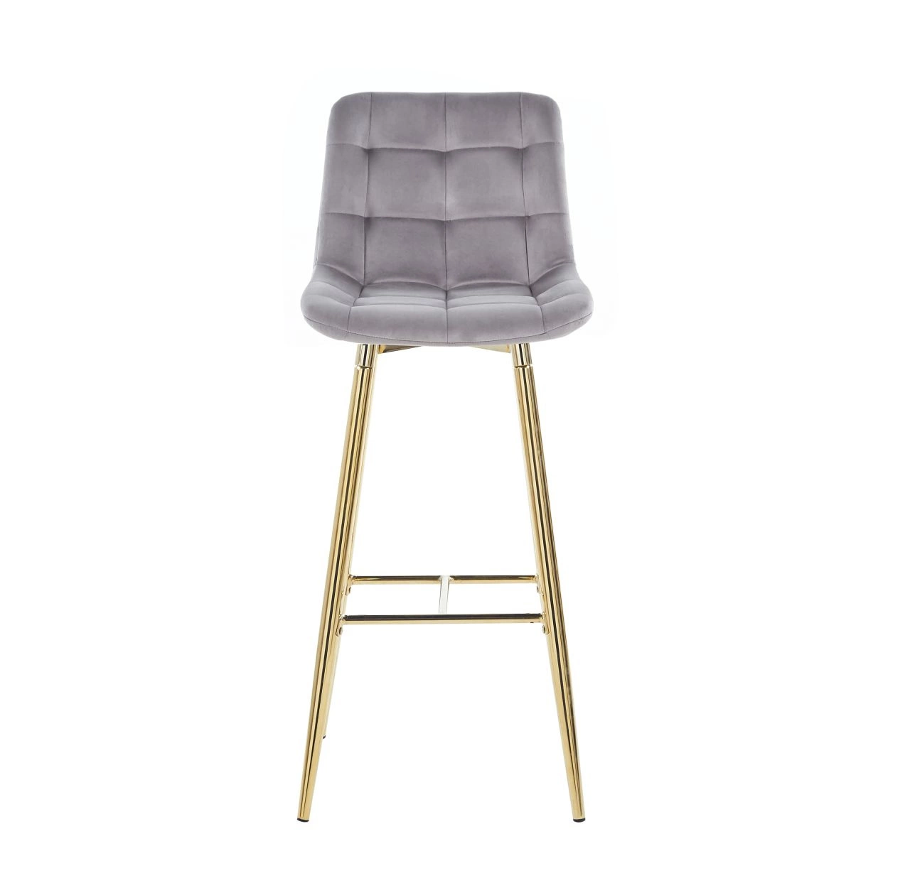 Hoker Poly High od značky Intesi je moderní barová židle s vysokým opěradlem, čalouněná měkkou sametovou látkou v odstínu šedé a postavená na stabilních zlatých nohách z oceli. Vyniká elegantním prošívaným designem a pohodlnou výškou sedáku 77 cm, což z ní činí perfektní volbu k kuchyňskému ostrůvku, vysokému baru nebo do stylové jídelny. Toto spojení funkčnosti a sofistikovaného stylu je navrženo pro každodenní využití v kuchyni, obývacím pokoji nebo restauraci.