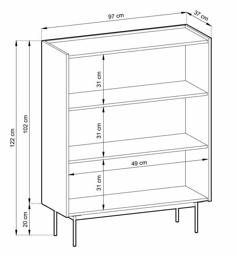 Za dvěma dvířky najdete tři prostorné police, do kterých uložíte vše, co potřebujete mít vždy po ruce. Hladké čelní plochy bez úchytek a otevírání pomocí vysunuté hrany zajišťují intuitivní a pohodlné používání. Maximální nosnost až 30 kg umožňuje bezpečné uložení i těžších předmětů, a výška 122 cm nabízí dostatek úložného prostoru bez zbytečného zabírání podlahové plochy.