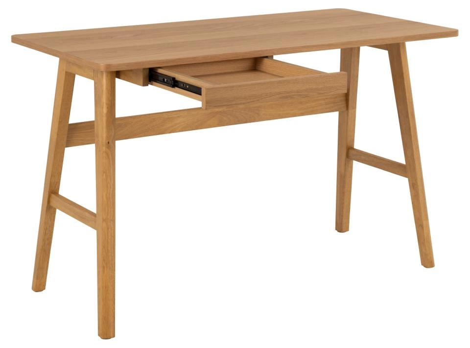 Psací stůl Barnett od značky Actona je skvělou volbou pro ty, kteří oceňují skandinávský minimalismus, přírodní materiály a funkčnost. Model o rozměrech 120×60×75 cm je vyrobený z gumovníkového dřeva a dubové dýhy a je vybavený praktickou zásuvkou, díky čemuž se perfektně hodí jako pracovní stůl do kanceláře, na studium nebo pro domácí home office. Obdélníková deska v přirozeném odstínu dubu a lehká, ale stabilní konstrukce na čtyřech nohách zdůrazňují moderní charakter a nadčasovou eleganci tohoto psacího stolu.