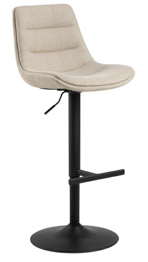 Hoker Adisa značky Actona je moderní, béžová barová židle do kuchyně a k ostrůvku, která spojuje pohodlí čalouněného sedáku s funkčností otočného mechanismu a nastavitelnou výškou. Vyniká měkkou látkou Basel, matným povrchem a minimalistickým designem na jedné černé noze. Díky šířce 47 cm a výšce sedáku 65 cm je tento hoker ideální volbou k kuchyňskému ostrůvku nebo vysoké pracovní desce v moderním interiéru.