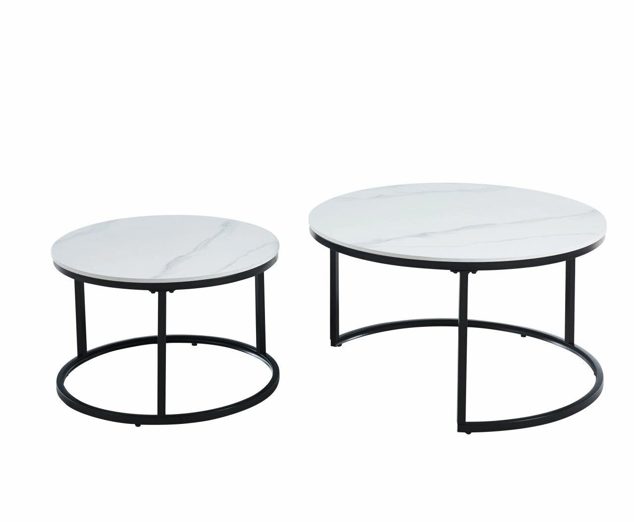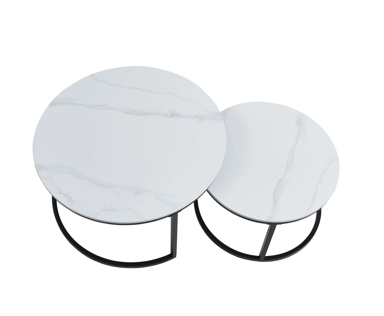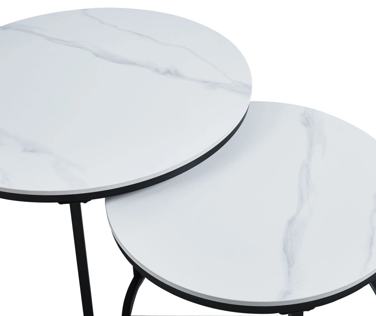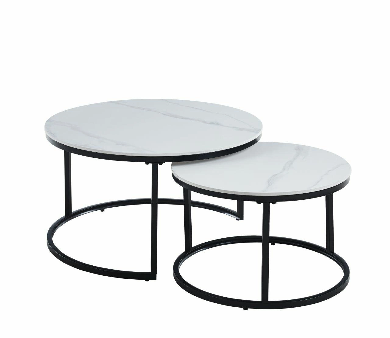 Sada 2 kulatých konferenčních stolků Silas od značky Intesi představuje spojení vytříbeného designu s praktickým využitím. Každý stolek upoutá pozornost keramickou deskou v dekoru bílého mramoru a stabilní černou kovovou podnoží. Díky rozdílným rozměrům stolků (80x80x44 cm a 60x60x38 cm) můžete snadno přizpůsobit uspořádání obývacího pokoje, jídelny nebo moderní kanceláře.Objevte blíže sadu konferenčních stolků Silas