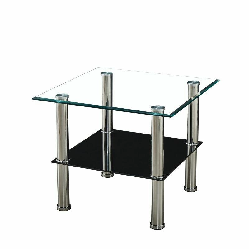 Konferenční stolek Irina moderní skleněný čtvercový s policí 60x60 cm do obýváku loftový