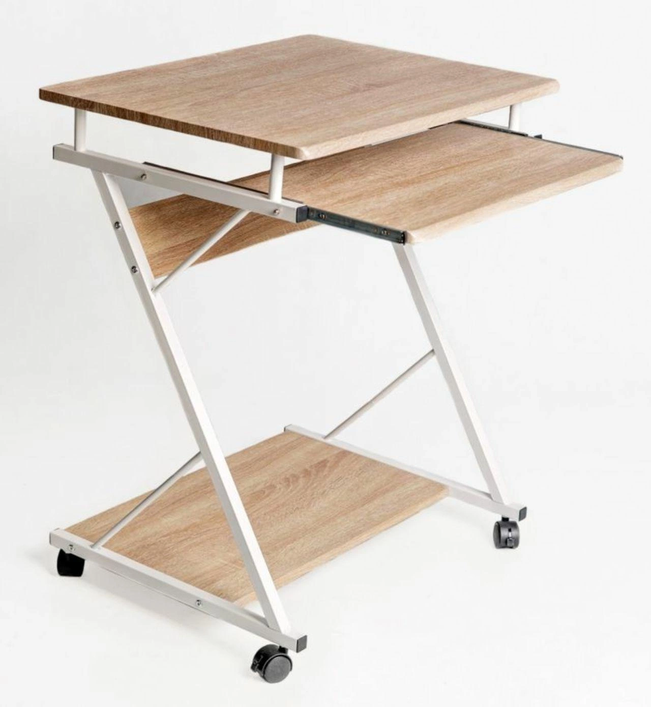 Mládežnický psací stůl Atryda od značky Intesi je moderní kus nábytku s kompaktními rozměry 75×60×48 cm, který se skvěle hodí do studentského pokoje, ložnice nebo domácí kanceláře. Zaujme kombinací přírodní desky a bílé kovové konstrukce na kolečkách, což zajišťuje snadnou mobilitu a svěží, skandinávský styl. Přídavné police a výsuvná polička na klávesnici dělají z tohoto stolu funkční počítačový stůl, ideální jak pro studium, tak práci na notebooku.