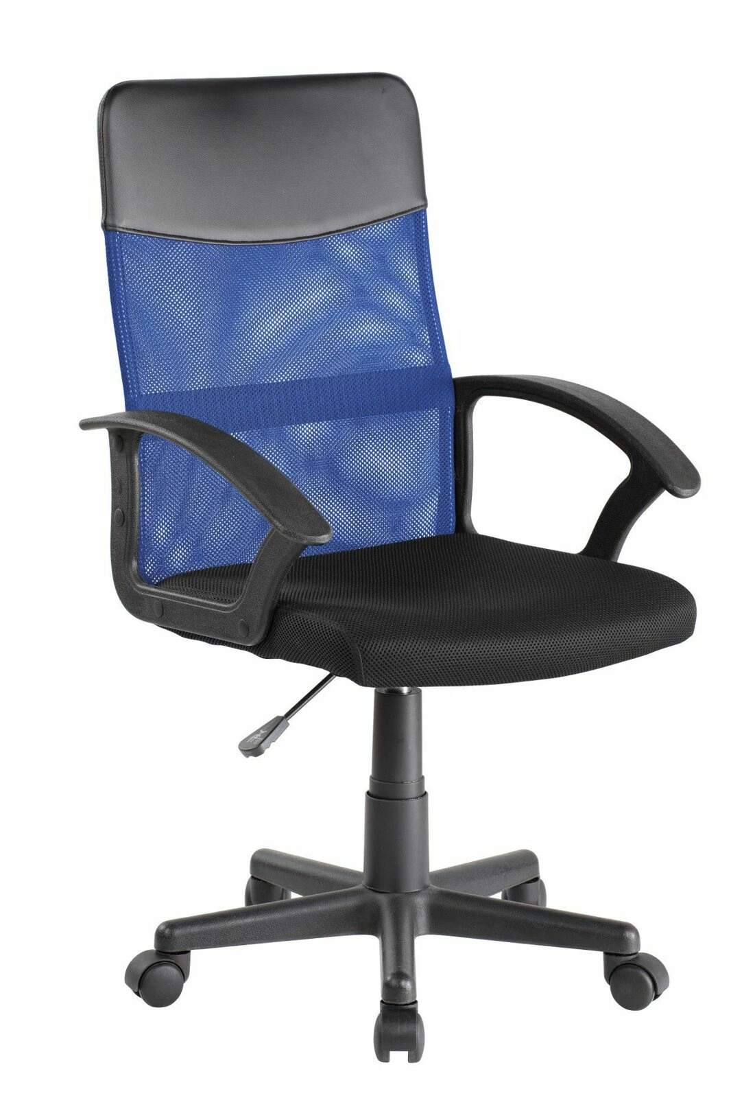 Modrý opěrák a černý sedák vytvářejí harmonický kontrast a dodají eleganci a styl každému interiéru. Díky svým vnějším rozměrům (šířka 56 cm, hloubka 55 cm, výška 92,5-104,5 cm) se židle Spero skvěle hodí do kanceláře i domácí pracovny.