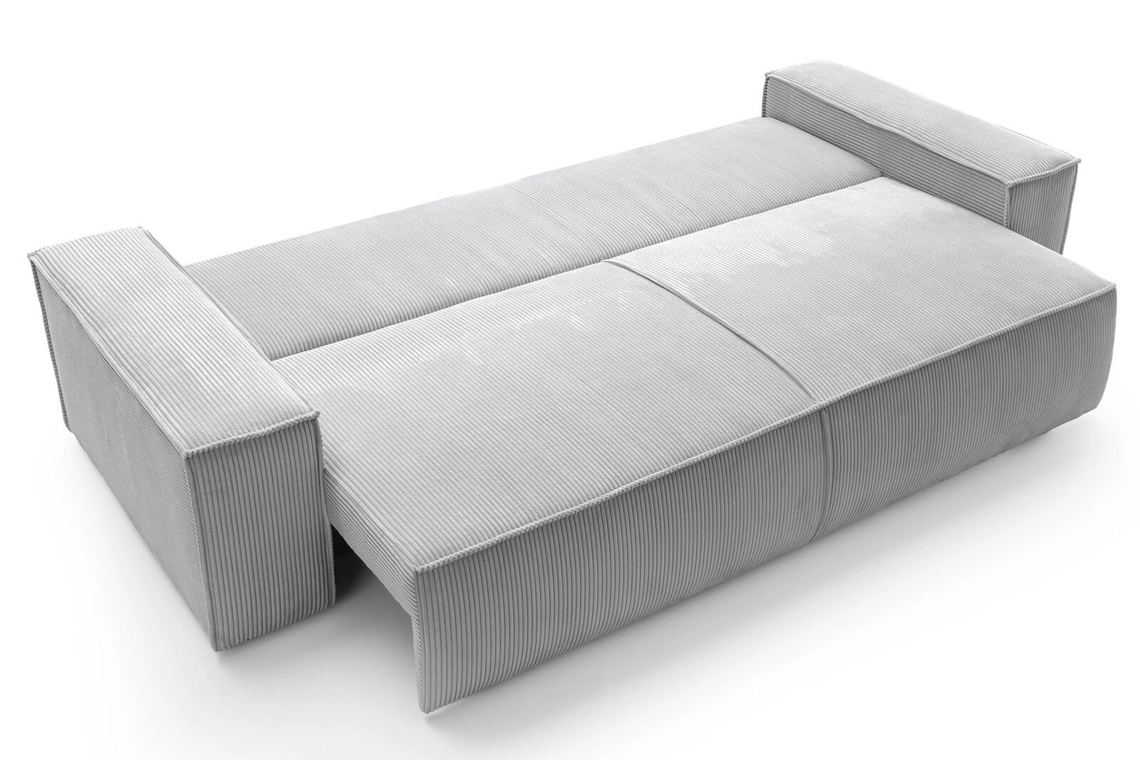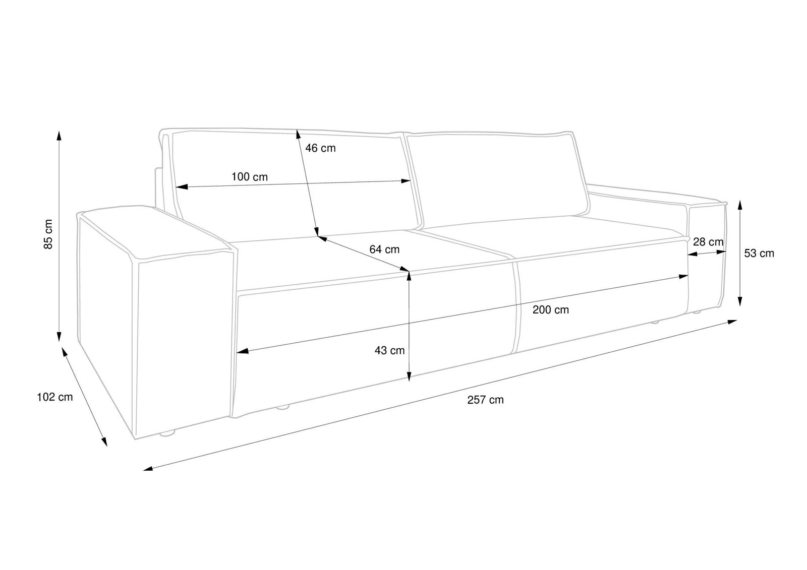 Rozkládací pohovka Molde od značky Intesi je esencí skandinávského stylu spojenou s praktičností – ideální volba do obývacího pokoje, studentského pokoje nebo ložnice. Vyrobena z příjemné manšestrové látky ve světle šedém odstínu nabízí spací plochu o rozměrech 200x135 cm a pohodlné sedadlo z čalounické pěny a pružin. Šířka 257 cm a hloubka 106 cm zajišťují maximální komfort při každodenním odpočinku i spánku, zatímco prostorný úložný box na lůžkoviny vyřeší problém s uložením přikrývek a polštářů.