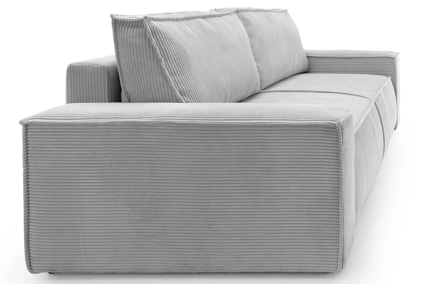 Světle šedá barva a typická manšestrová struktura dávají pohovce Molde nadčasový vzhled, který skvěle zapadne do skandinávského interiéru. Jednoduchý tvar, matné provedení a široké područky vnášejí do prostoru klid a harmonii, zatímco přiložené polštáře poskytují maximální pohodlí při relaxaci s knihou nebo setkáních s rodinou a přáteli. Rozkládací pohovka Molde vynikne zejména v kombinaci s přírodními materiály a světlými, minimalistickými doplňky.