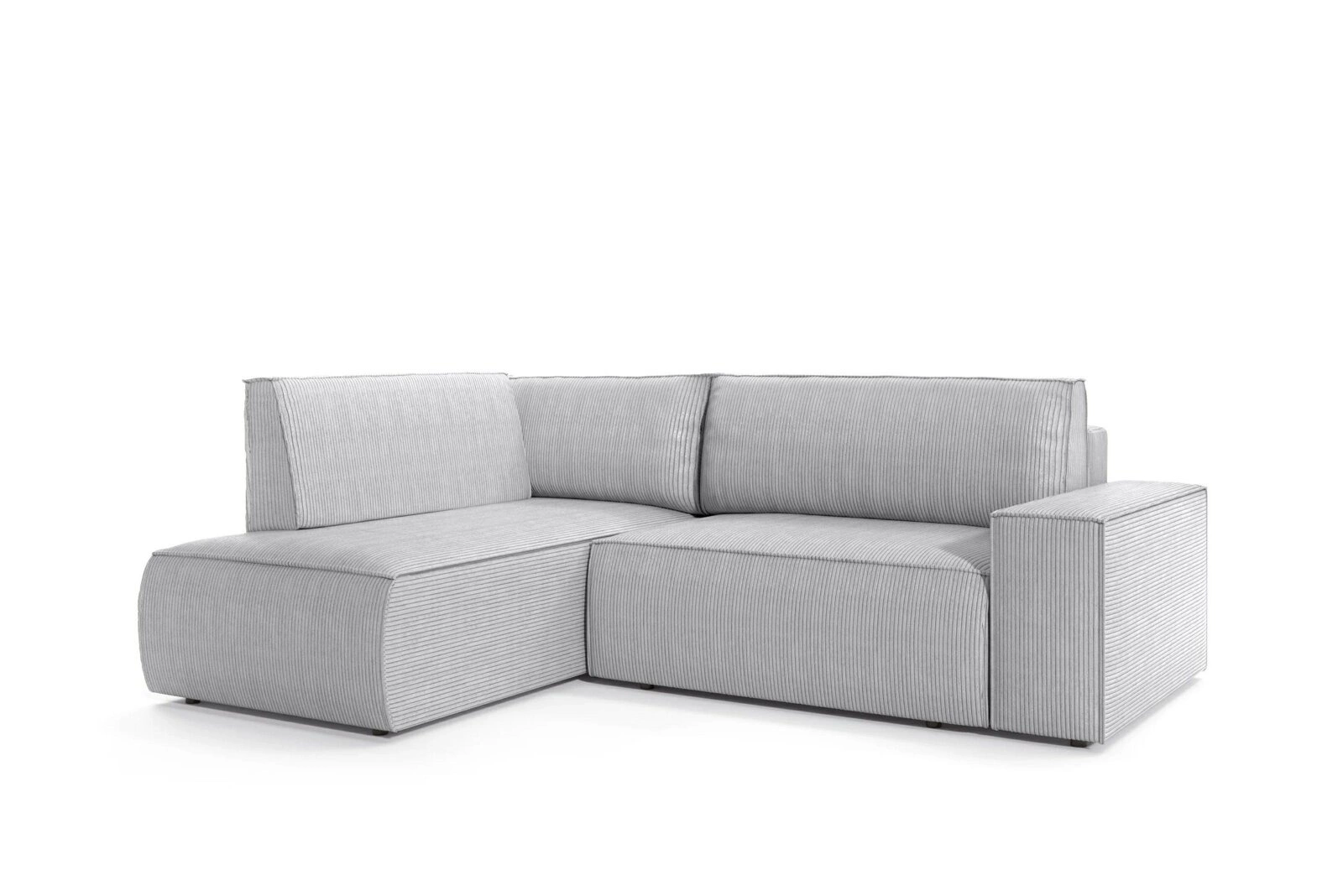 Čalouněná měkkým manšestrem ve světle šedém odstínu, rohová sedačka Molde L vytváří útulnou atmosféru v každém moderním obývacím pokoji. Široké sedadlo s výplní z kvalitní čalounické pěny a pružin nabízí skutečné pohodlí – ať už relaxujete s knihou nebo hostíte návštěvy. Typické žebrování manšestrové látky nejen upoutá pohled, ale je také příjemné na dotek, což přispívá k ještě většímu relaxu při odpočinku.