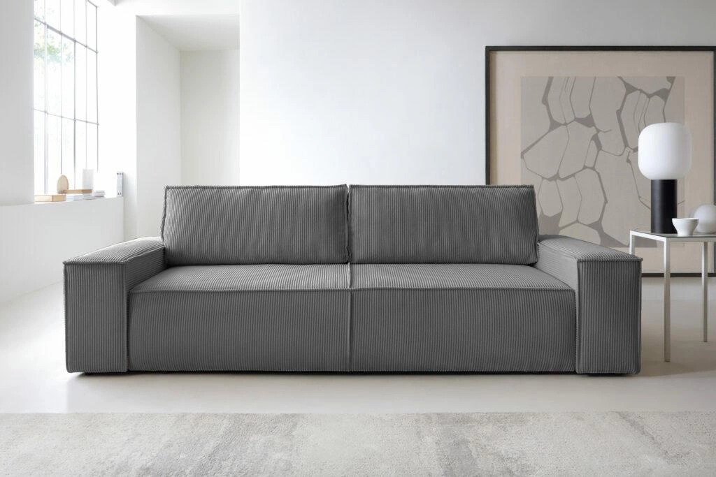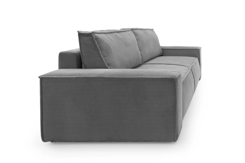 Rozkládací pohovka s funkcí spaní Molde od značky Intesi je ideální volbou pro ty, kteří dávají přednost pohodlí a praktičnosti v moderním stylu. Čalouněná měkkým, šedým manšestrem s matným povrchem, nabízí široké sedadlo, pohodlné područky a velké polštáře – perfektní místo pro každodenní odpočinek i pohodlný spánek. Díky rozměrům 257×106×85 cm a velké spací ploše 200×135 cm je rozkládací pohovka Molde skvělou volbou do obývacího pokoje, denní místnosti nebo studentského pokoje.