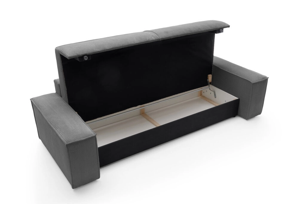 Rozkládací pohovka s úložným prostorem Molde tmavě šedý manšestr na spaní do obýváku