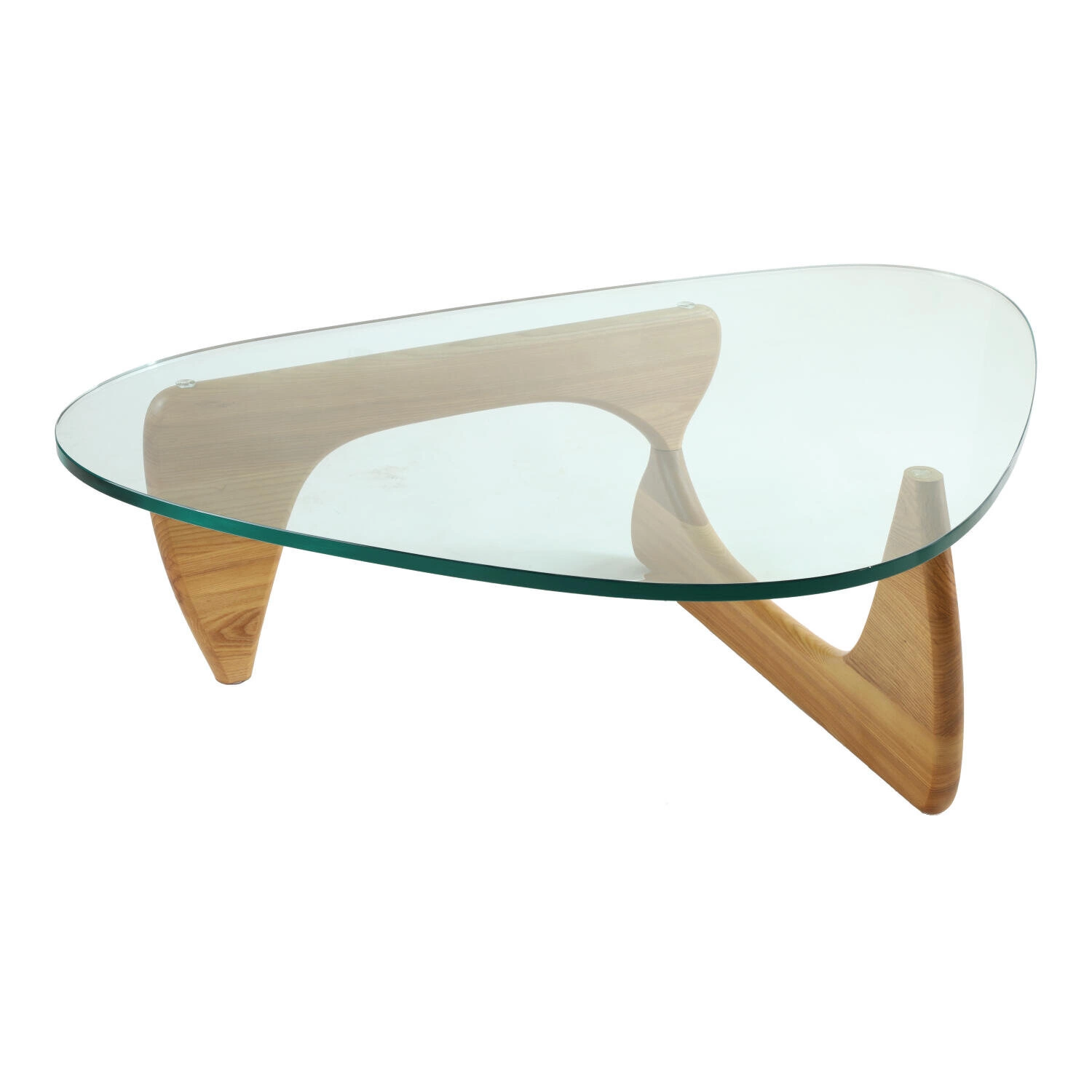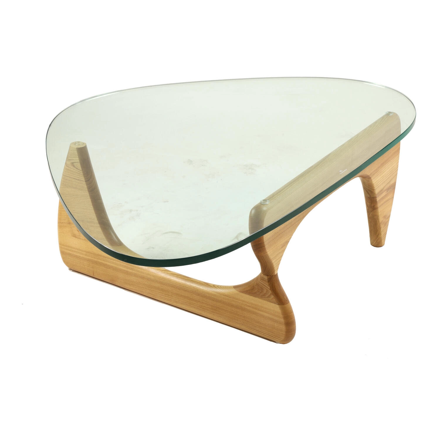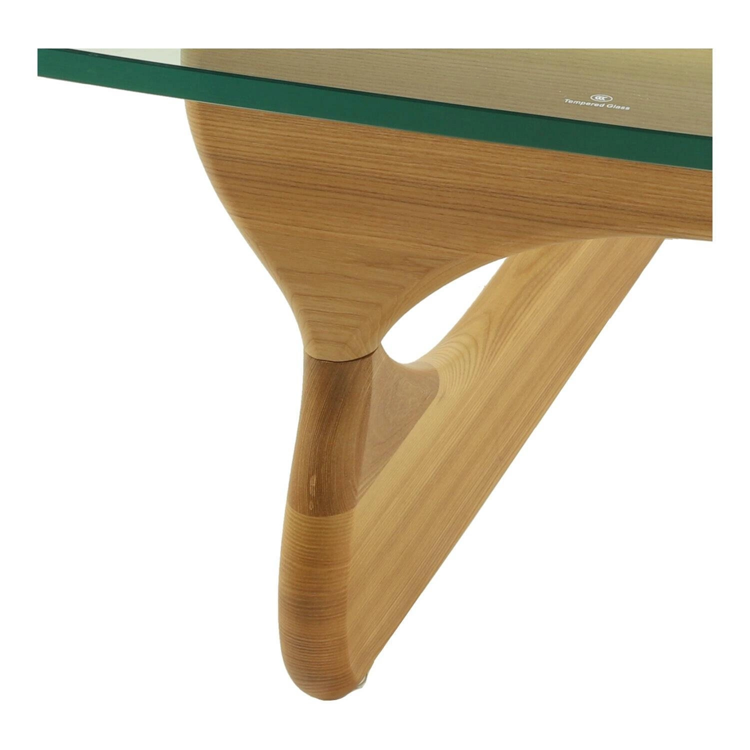 Konferenční stolek Trix inspirovaný Noguchi skleněný s jasanovým dřevem skandinávský do obýváku