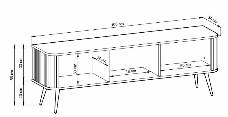 - Šířka 168 cm – ideální pro velké televize a rozsáhlé audio sestavy