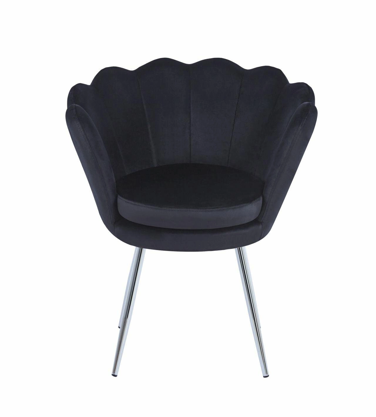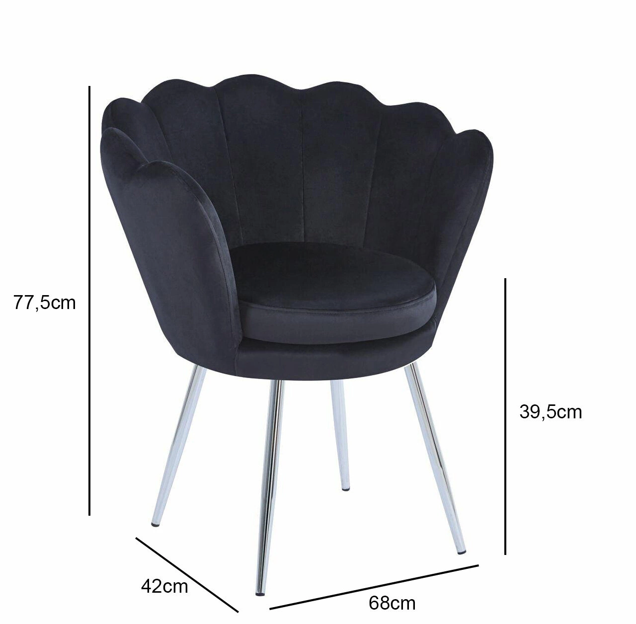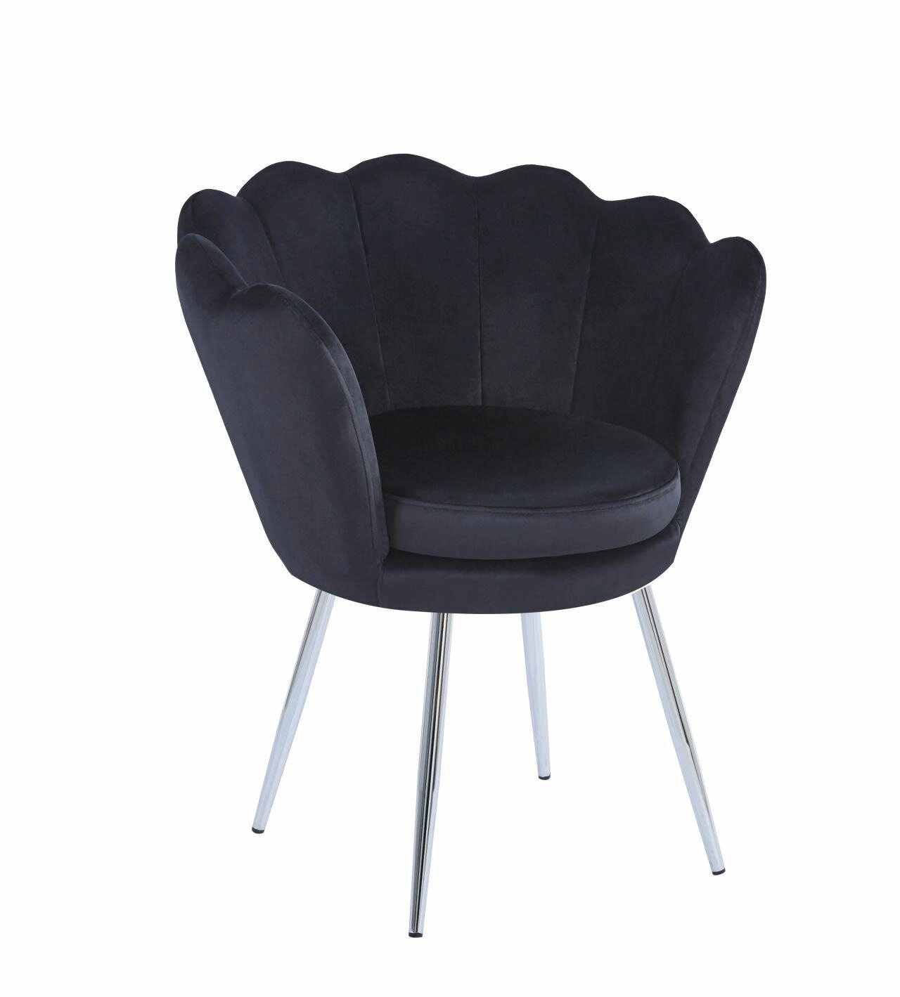 Čalouněná židle mušle Fiona VIC od značky Intesi je jedinečnou volbou pro milovníky elegance a pohodlí. Vyniká sametovým čalouněním v hluboké černé barvě a vysokými stříbrnými nohami, které jí dodávají sofistikovaný glamour vzhled. Díky širokému sedáku s područkami a ergonomickému opěradlu nabízí model Fiona VIC maximální pohodlí jak v obýváku, tak u toaletního stolku nebo v jídelně.