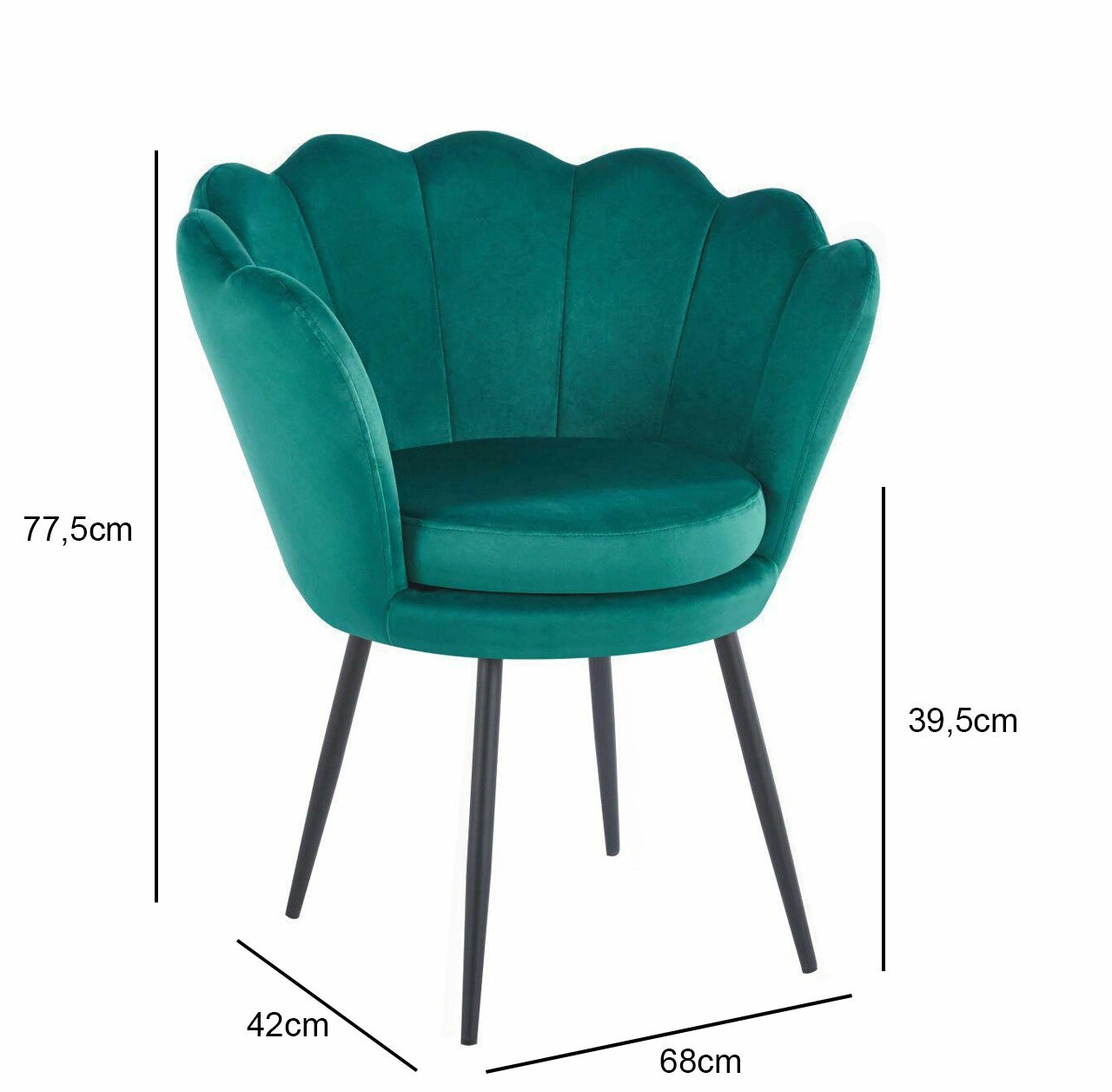 Sametové čalounění dodává křeslu výjimečný charakter a jemnost na dotek. Stabilitu zajišťují čtyři kovové nohy, práškově lakované. Dostupnost v mnoha barevných variantách a třech typech základen umožňuje přizpůsobit křeslo individuálním preferencím a stylu interiéru.