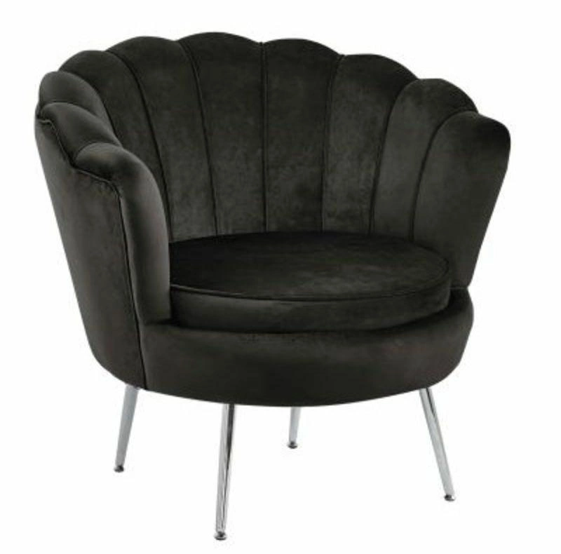 Čalouněné křeslo Korab VIC černý samet glamour do obýváku mušle stříbrné nohy Intesi