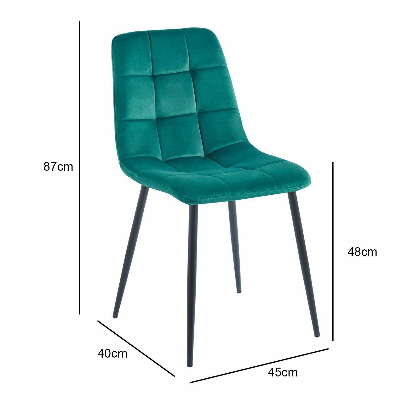 Jídelní židle Caro Velvet zelená čalouněná sametem a prošívaná je volbou, která oživí váš každodenní život. Vyberte si tento model, pokud hledáte moderní židli, která zaujme vzhledem i funkčností – od rodinné jídelny přes stylový obývák až po pohodlnou kuchyni.