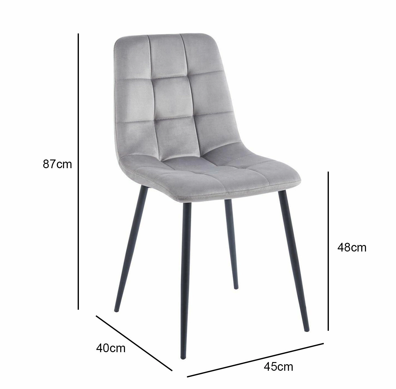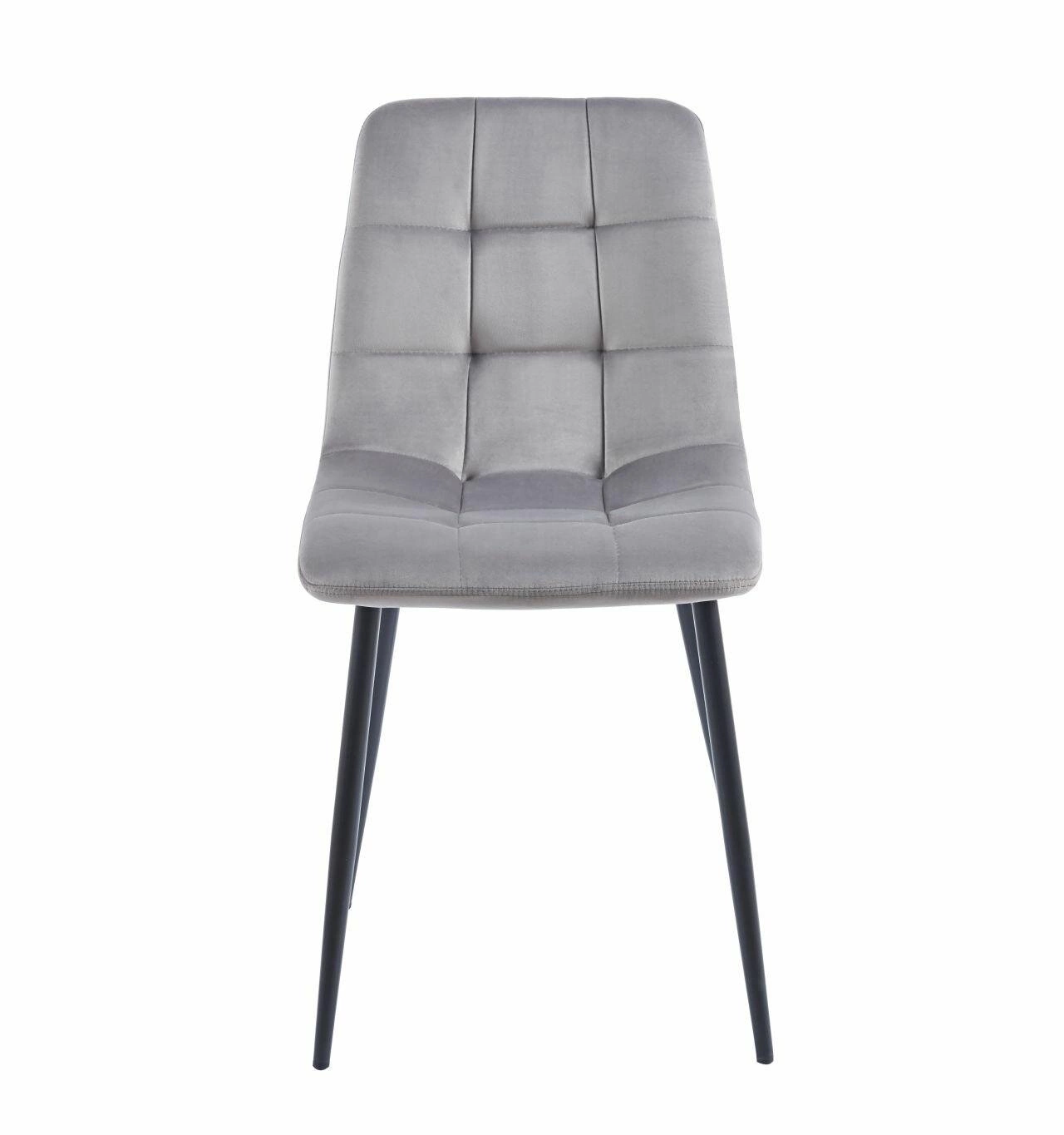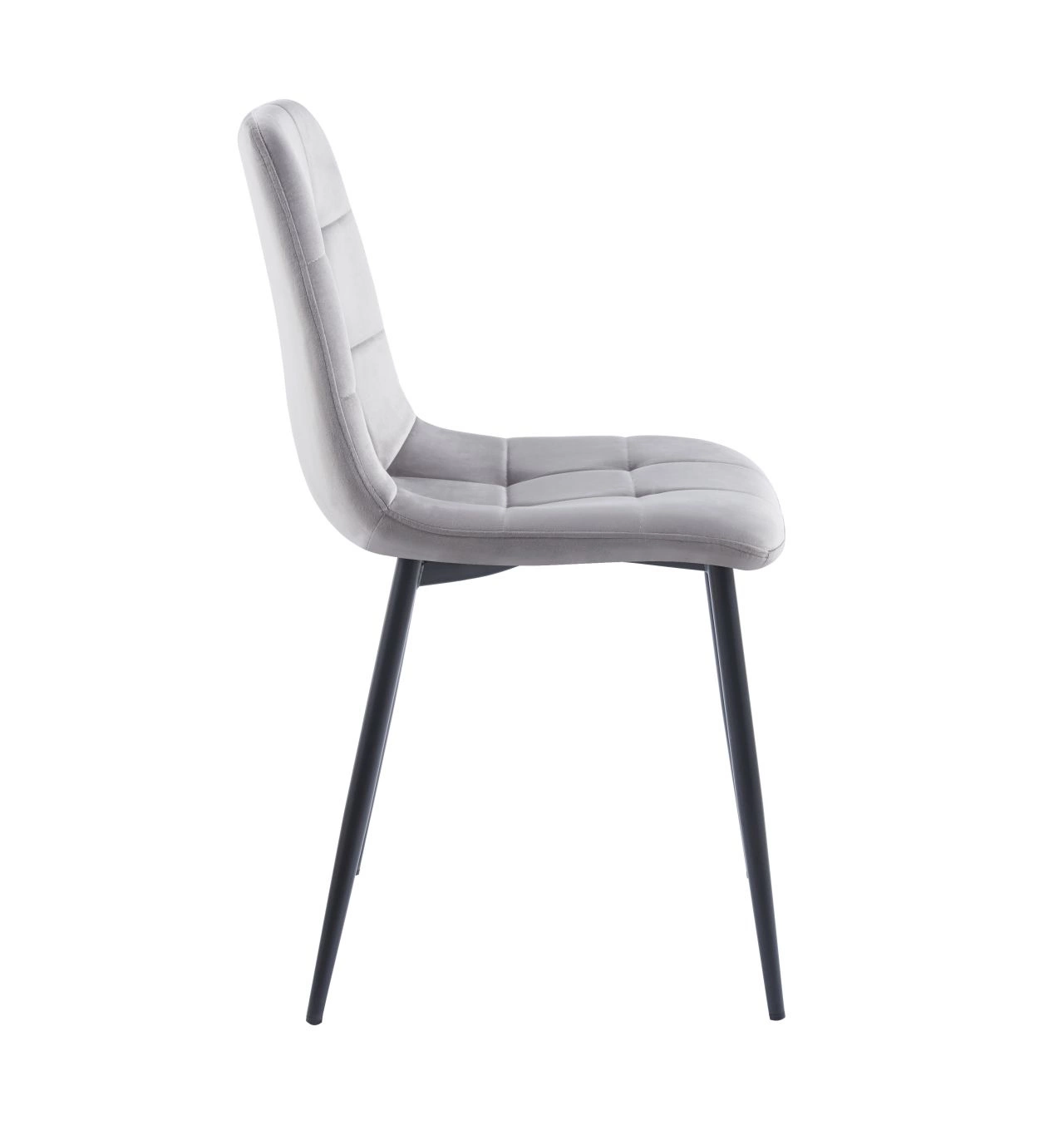 Jídelní židle Caro Velvet od značky Intesi je spojením vytříbeného stylu a každodenního pohodlí. Prošívané, sametové čalounění v elegantním šedém odstínu a štíhlé, černé kovové nohy dodávají židli moderní vzhled, který skvěle zapadne do módních, minimalistických interiérů. Výška 87 cm a pohodlné sedadlo o šířce 45 cm zajišťují, že tato čalouněná židle je ideální volbou ke stolu v jídelně, v obývacím pokoji nebo v kuchyni.
