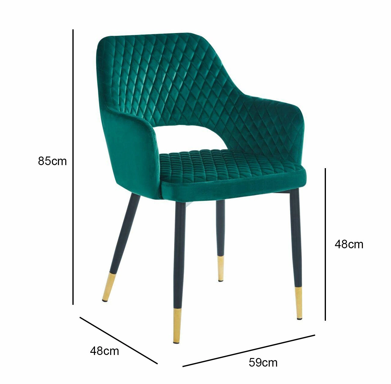 Jídelní židle Olivia od značky Intesi spojuje moderní glamour styl s mimořádným pohodlím při používání. Čalouněná sametem v hlubokém odstínu zelené nabízí pohodlné područky a efektní prošívání, které židli dodává luxusní charakter. Stabilní kovová základna v černé barvě se zlatými detaily skvěle ladí s elegantní siluetou nábytku – je to perfektní volba do jídelny, obývacího pokoje, kuchyně nebo k toaletnímu stolku.