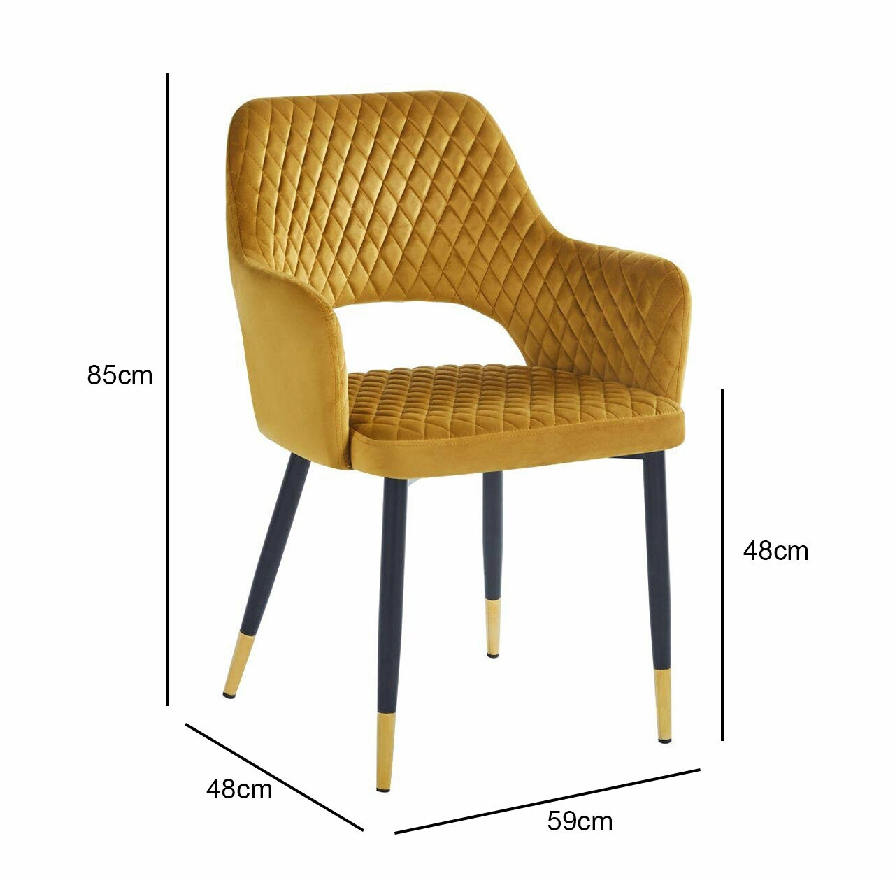 Čalouněná židle Olivia Velvet od značky Intesi je spojením moderního designu s luxusním nádechem glamour. Model v hořčičné barvě zaujme měkkým sametovým čalouněním, dekorativním prošíváním a pohodlnými područkami. Díky šířce 59 cm, hloubce 48 cm a výšce 85 cm nabízí komfortní místo k sezení jak u jídelního stolu, tak v obývacím pokoji nebo u toaletního stolku.