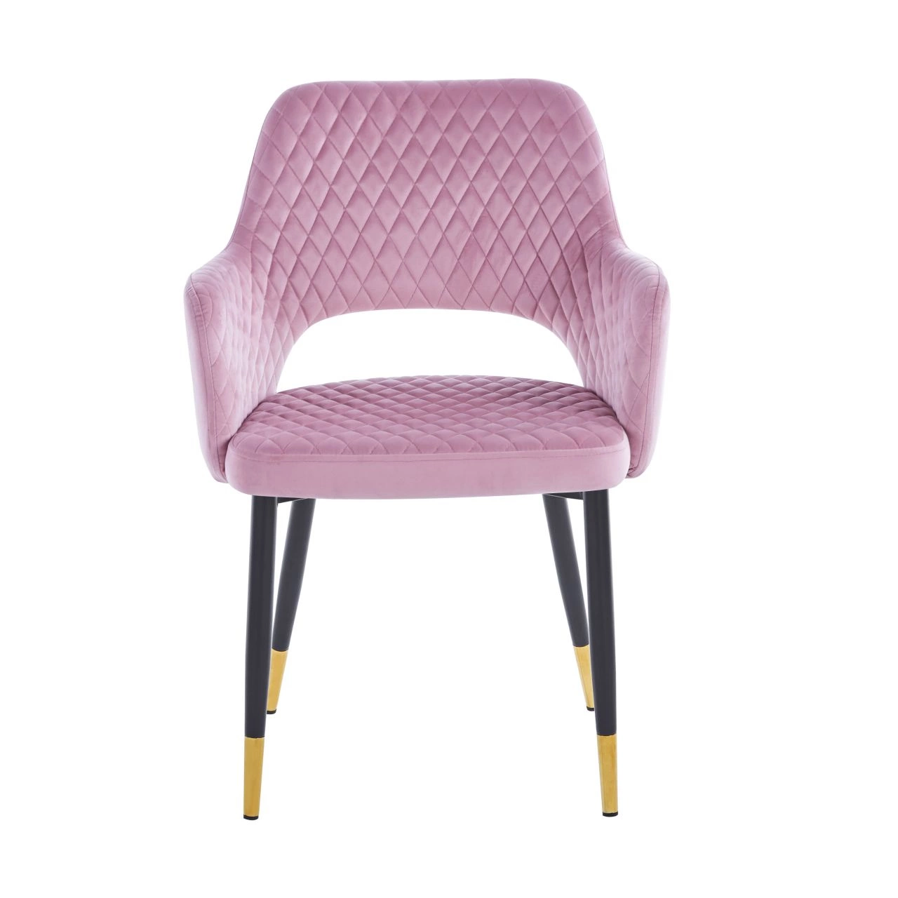 Čalouněná židle Olivia byla navržena pro ty, kteří hledají nábytek, jenž okouzlí hosty a zároveň poskytne pohodlí při každodenním stolování či dlouhých posezeních u stolu. Sametová látka je příjemná na dotek a snadno se udržuje v čistotě, díky čemuž židle vypadá skvěle i při častém používání. Prošívaný růžový sedák je jemnou ozdobou, která vnáší do interiéru dotek luxusu a ženské lehkosti.