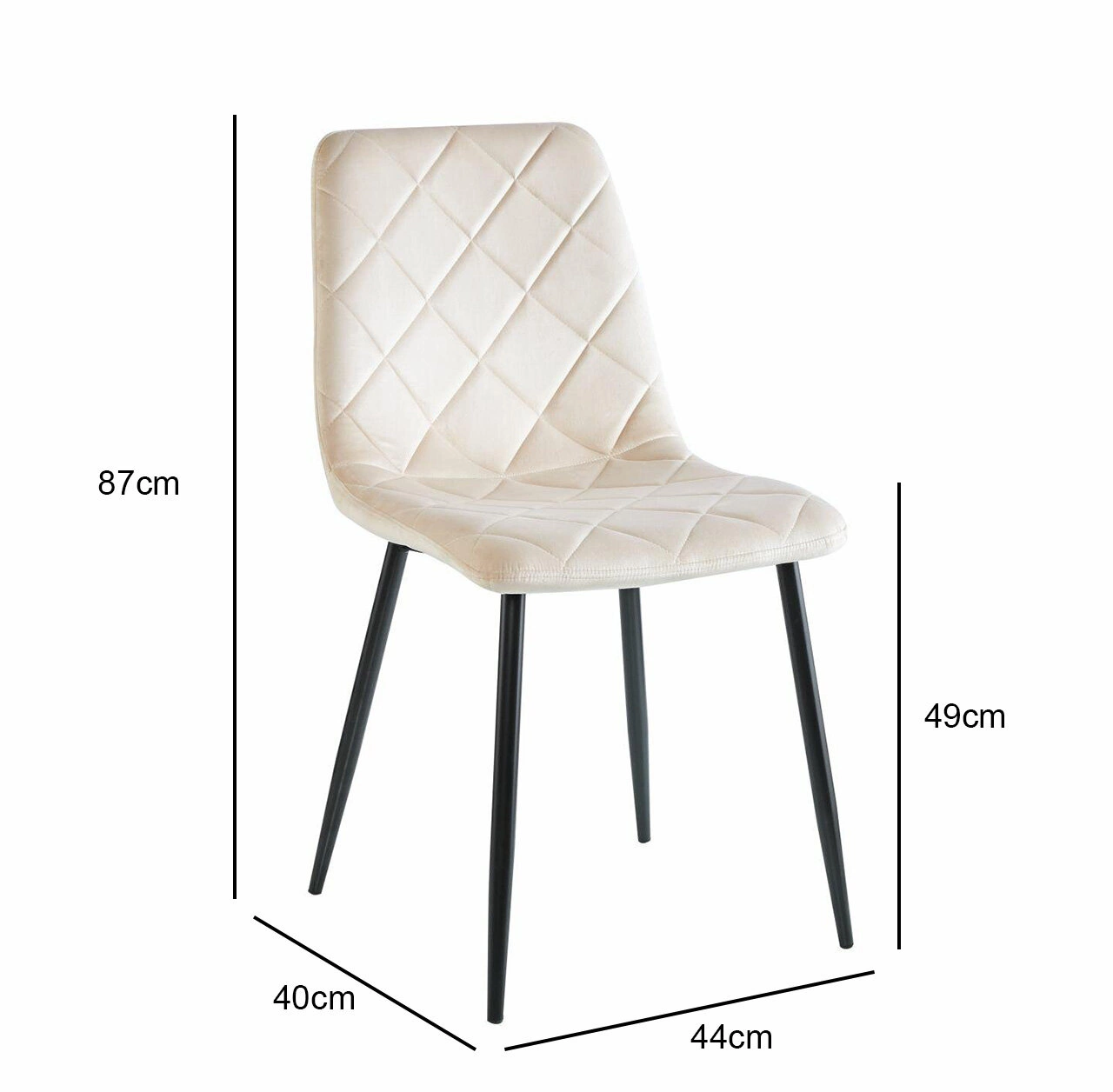 Jídelní židle Solito Intesi je moderním řešením, které spojuje eleganci béžového sametu s odolnou černou kovovou podnoží. Čalouněný sedák i opěradlo poskytují maximální pohodlí, zatímco jemné prošívání zdůrazňuje jedinečný charakter tohoto kousku. Díky kompaktním rozměrům – šířka 44 cm, hloubka 40 cm a celková výška 87 cm – se tento model skvěle hodí nejen do jídelny, ale také do obývacího pokoje, pracovny či ložnice.