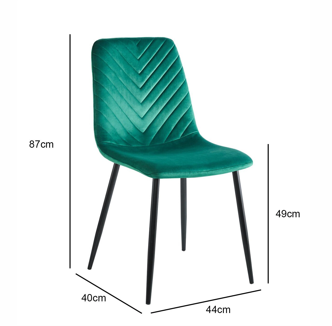 Čalouněná židle Herman Velvet zelená od značky Intesi je moderním řešením pro jídelnu i obývací pokoj, které spojuje pohodlí při sezení s designovým stylem. Sedák potažený měkkým sametovým materiálem v hlubokém zeleném odstínu zajišťuje příjemné každodenní používání, zatímco černé kovové nohy s matnou povrchovou úpravou garantují stabilitu a dlouhou životnost. Výška sedáku 49 cm a kompaktní rozměry (44×40×87 cm) dělají z modelu Herman Velvet ideální volbu ke stolu v jídelně i do odpočinkového koutku v obýváku.