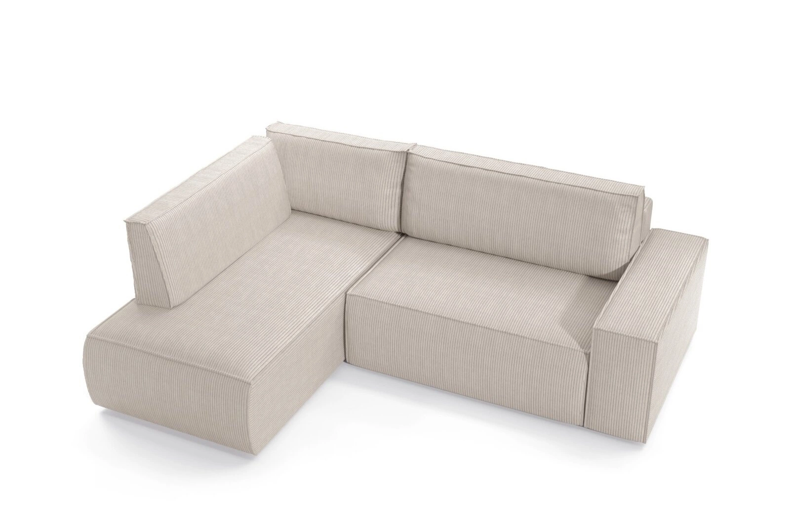 Rozkládací rohová pohovka s funkcí spaní Molde L manšestrová béžová pravá do obýváku s úložným prostorem