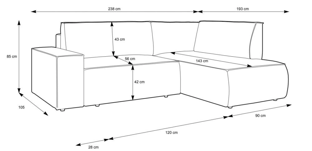 - Pravostranné provedení rohu – ideální ke zdi nebo do otevřeného prostoru