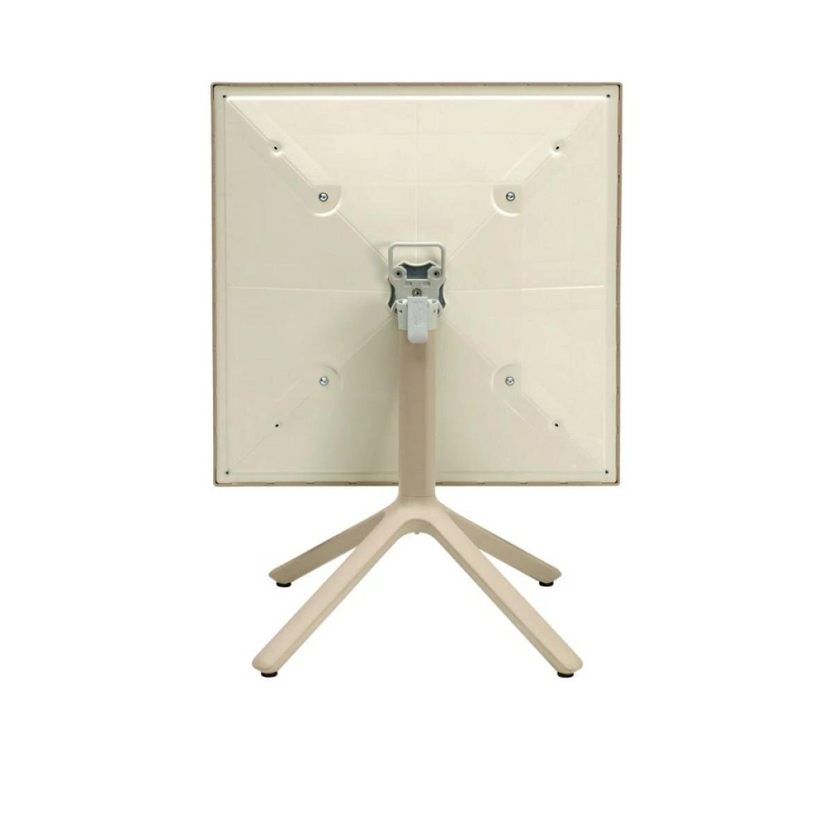 Díky vyváženému stylu a jemnému béžovému odstínu vnáší skládací stůl Eco do prostoru lehkost a harmonii, aniž by působil rušivě. Čtvercová deska umožňuje pohodlné usazení čtyř židlí a komfortní stolování v rodinném kruhu nebo při posezení s přáteli na terase. Výška 75 cm zajišťuje, že tento model pasuje k většině standardních jídelních a kuchyňských židlí.