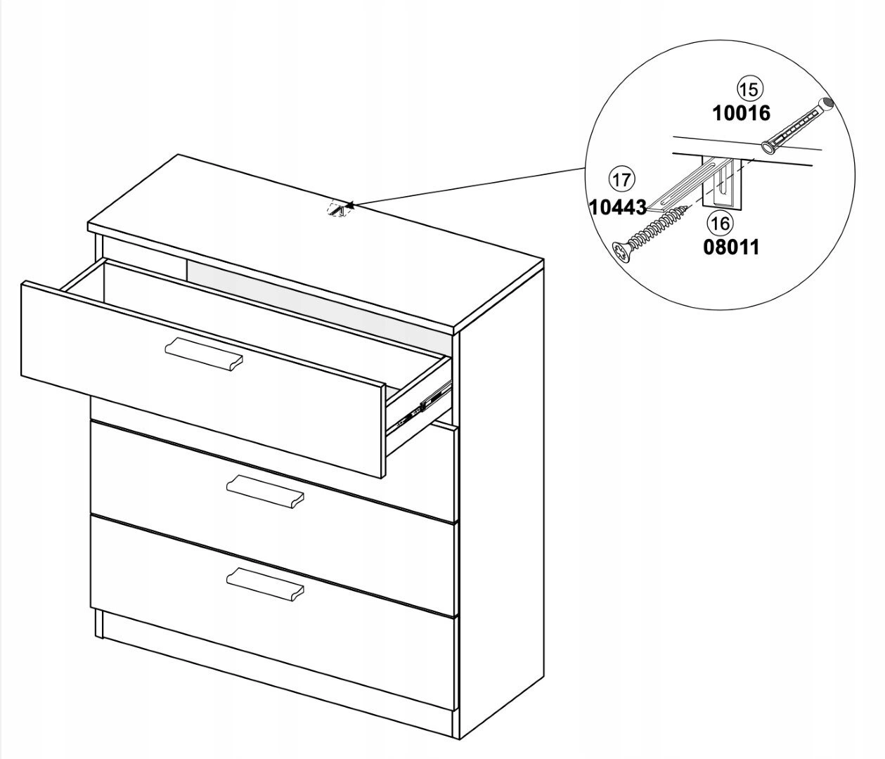 Díky třem hlubokým zásuvkám a čtyřem praktickým policím za dvěma dvířky vám komoda Tissa umožní přehledně uspořádat oblečení, doplňky nebo domácí potřeby. Promyšlené vnitřní uspořádání zajišťuje snadné třídění věcí, přičemž šířka 80 cm umožňuje komfortní využití i v menších místnostech. Výška 95 cm navíc poskytuje možnost využít horní desku jako další plochu pro dekorace nebo elektroniku.